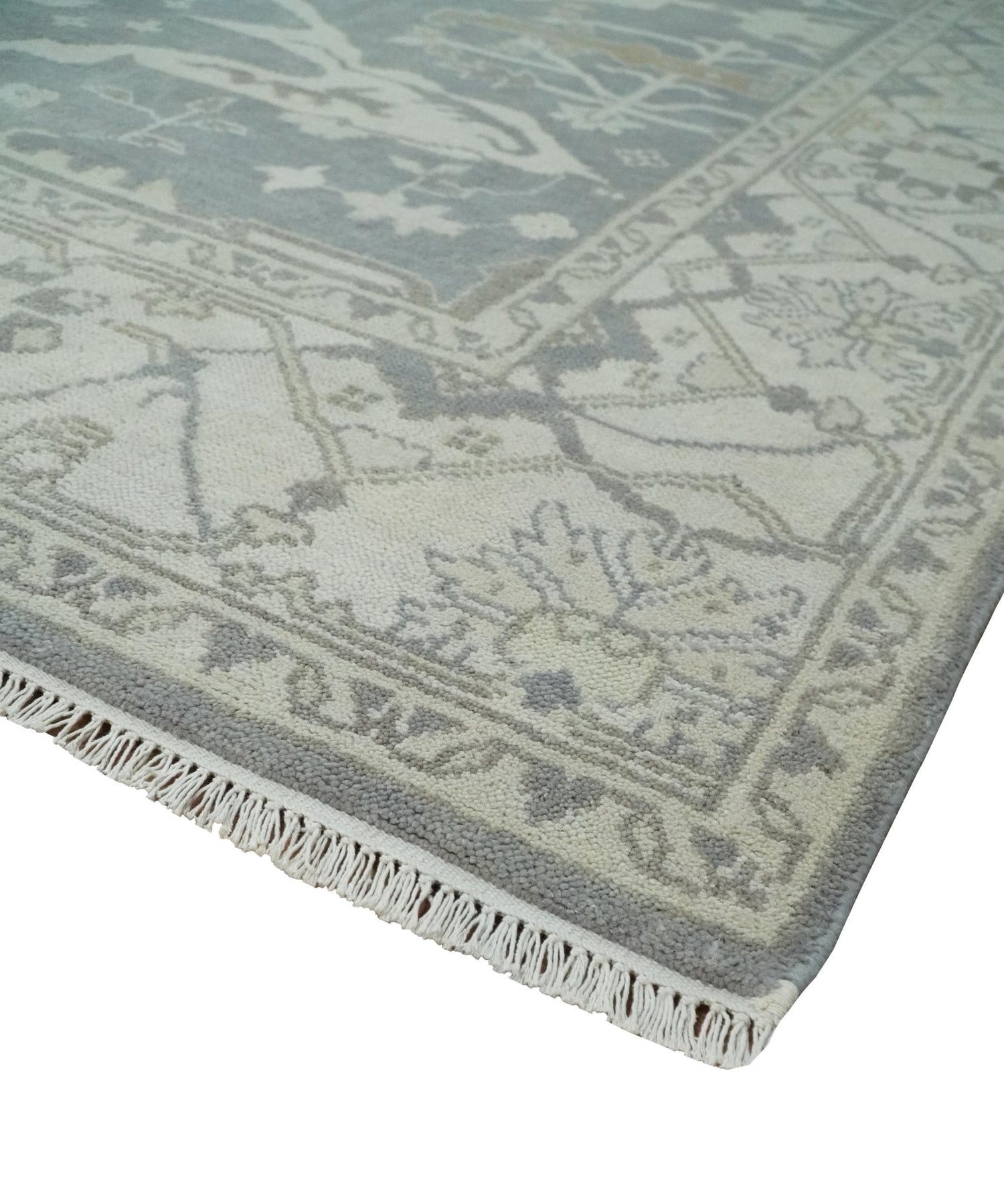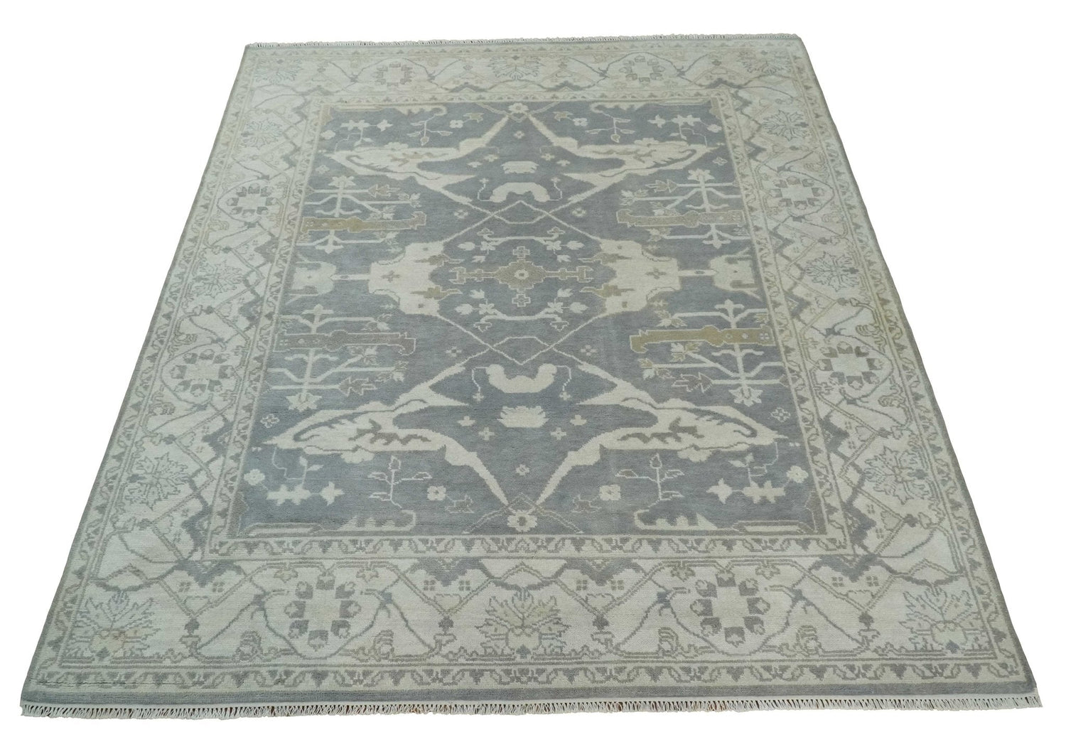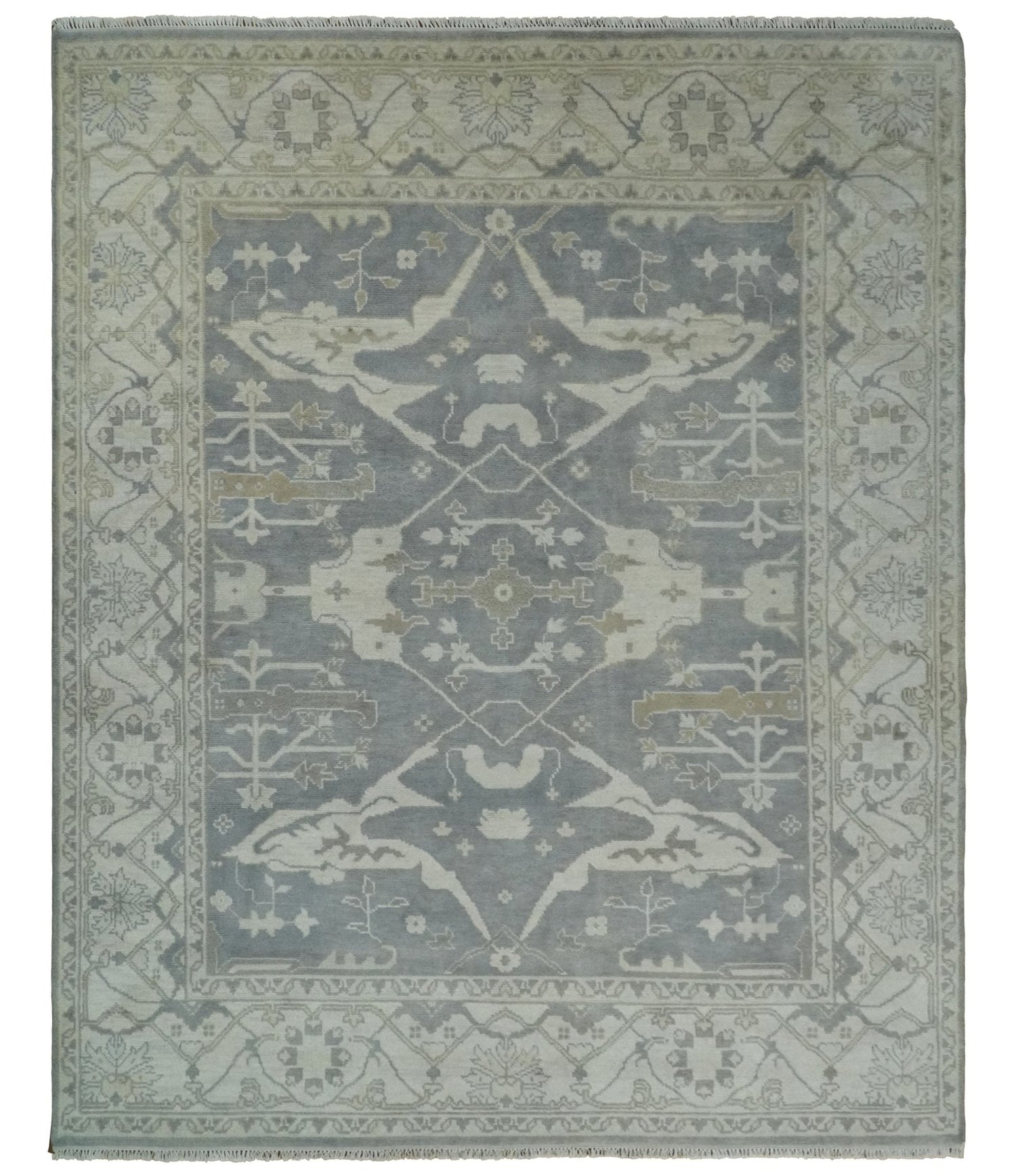Antique Silver, Ivory and Beige Hand Knotted 8x10 Oriental Oushak Wool Area Rug, Living Room Rug | TRDCP1159810