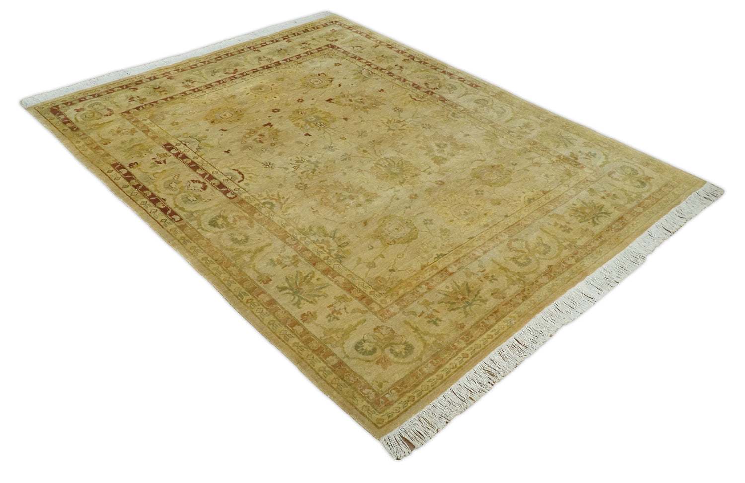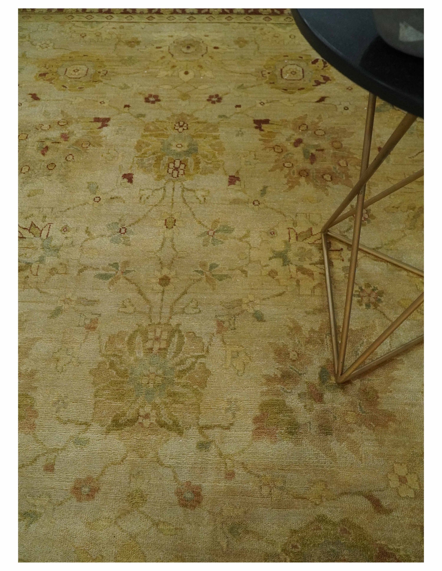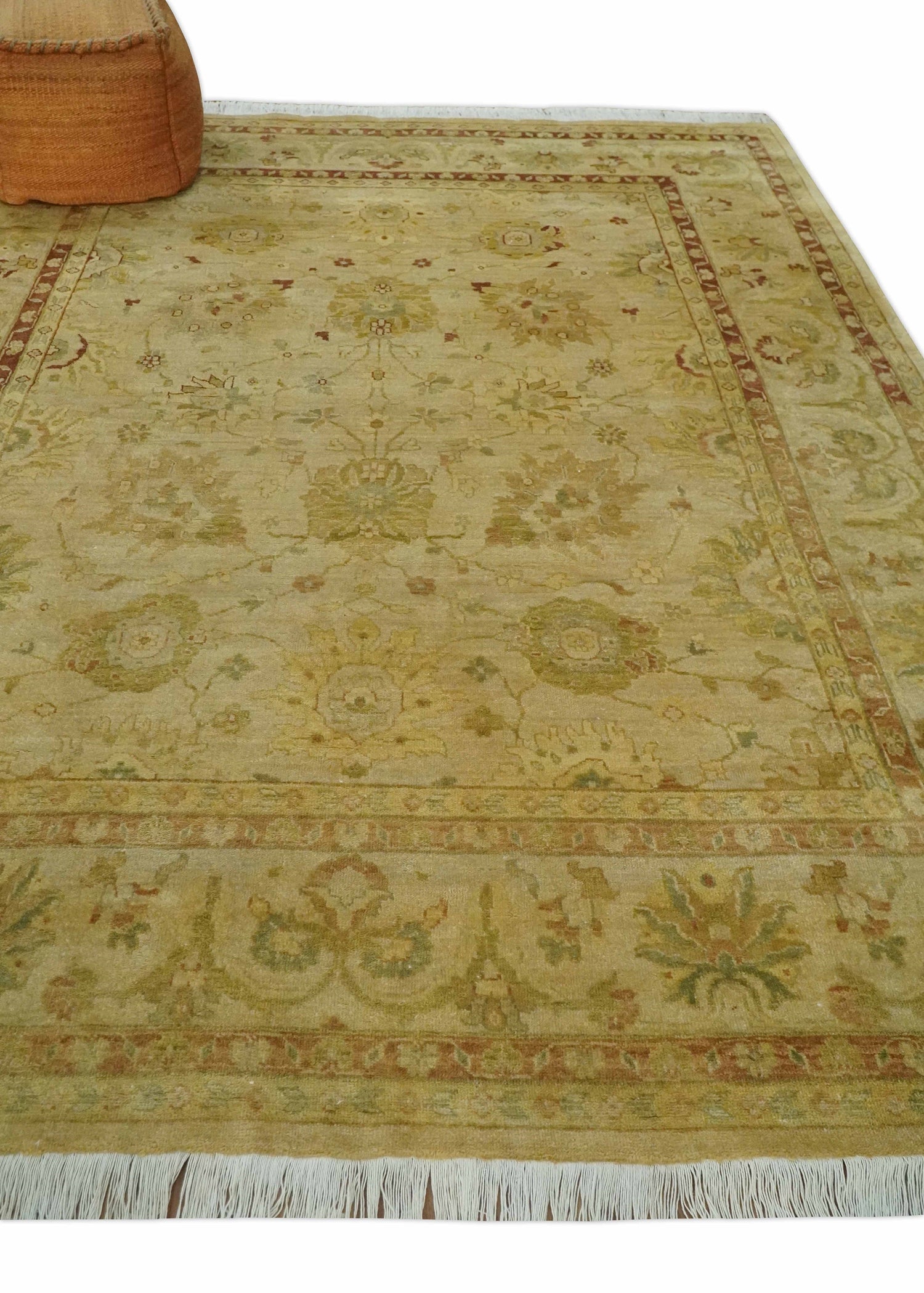 Antique Style 8x10 Hand Knotted Beige, Olive and Brown Traditional Oushak Wool Rug
