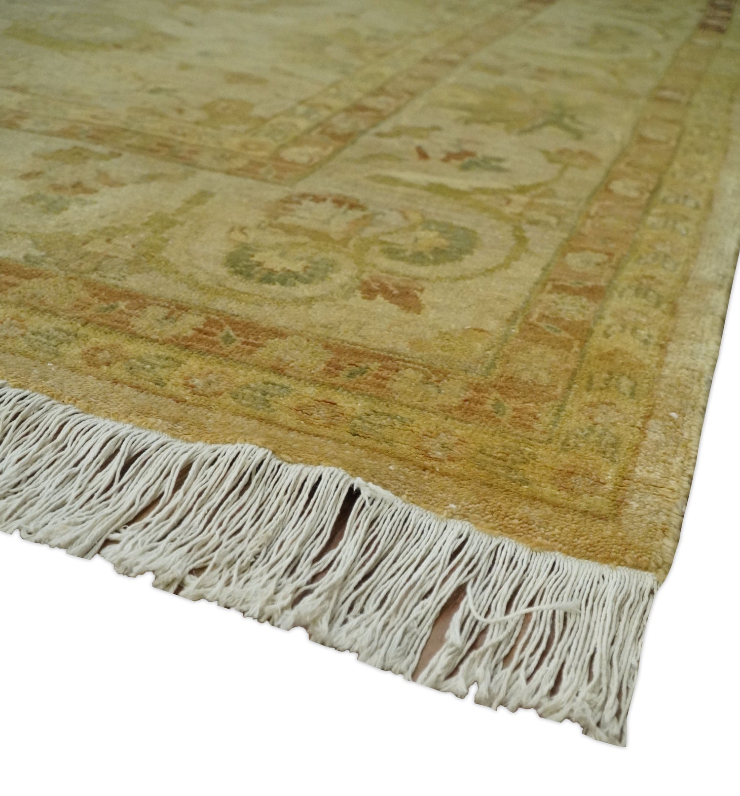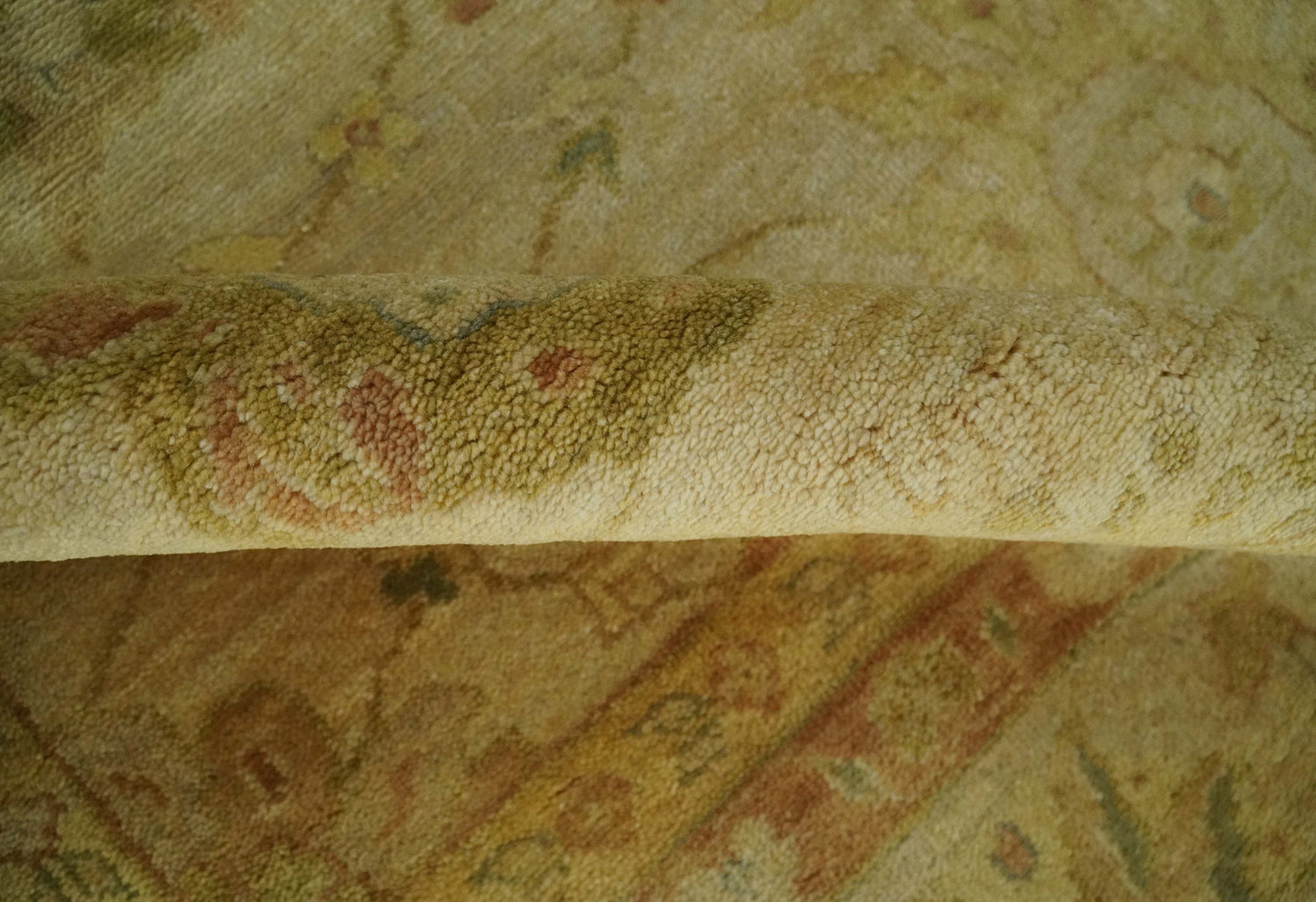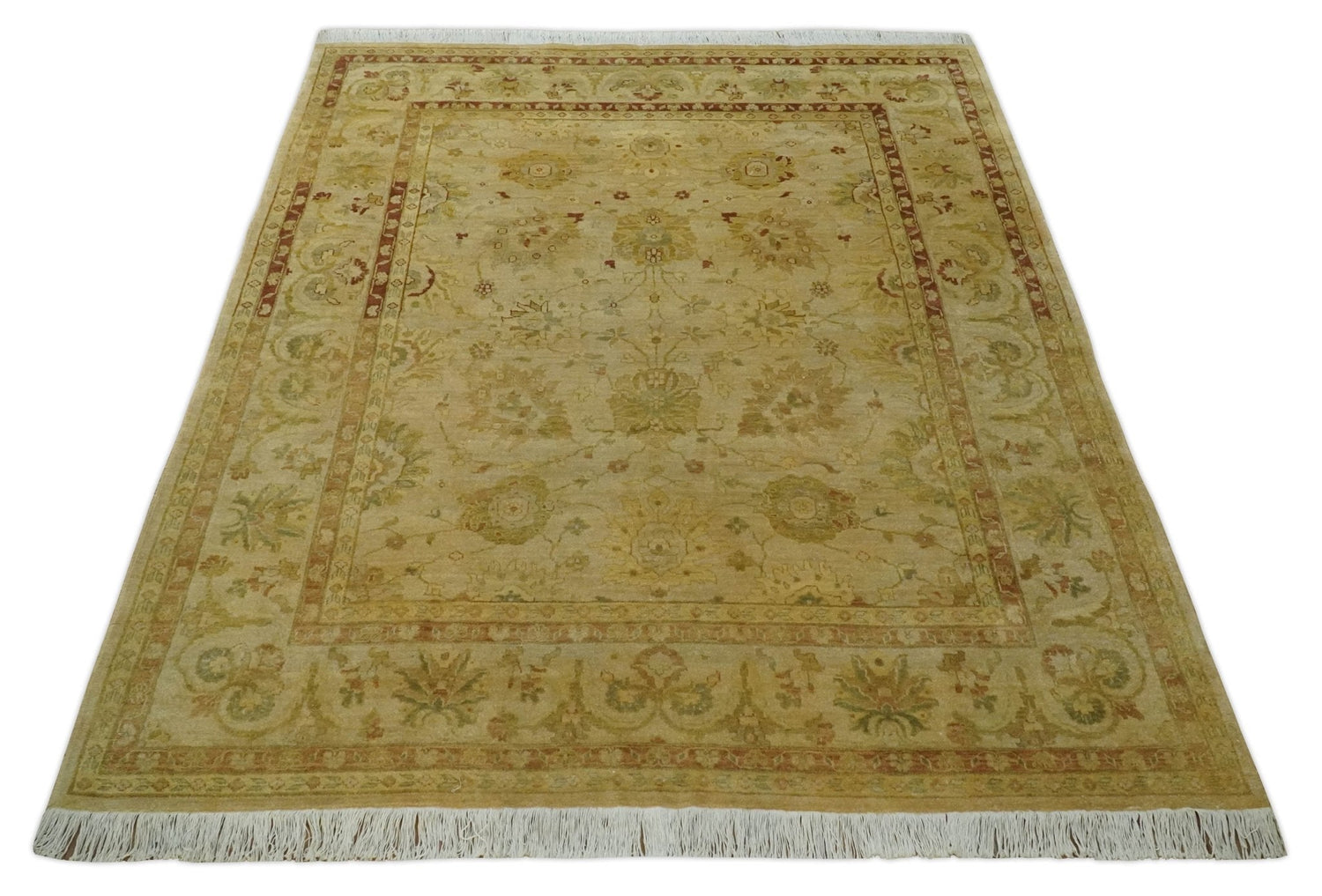 Antique Style 8x10 Hand Knotted Beige, Olive and Brown Traditional Oushak Wool Rug