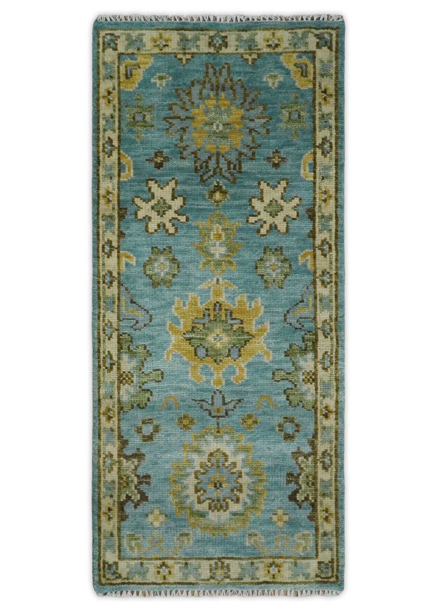 Antique Style Blue, Moss Green and Gold 8x10, 9x12 and 10x14 Wool Hand Knotted Traditional Vintage Wool Area Rug - 4x4 Square is backordered and will ship as soon as it is back in stock.