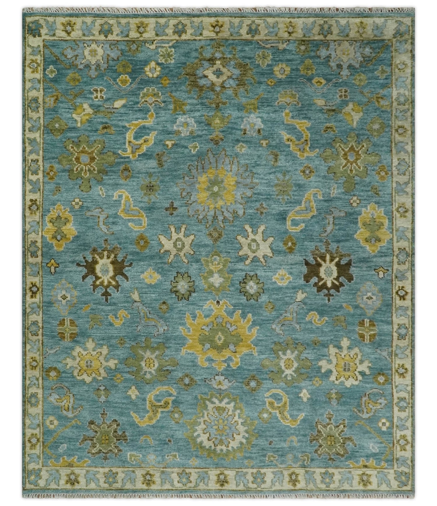 Antique Style Blue, Moss Green and Gold 8x10, 9x12 and 10x14 Wool Hand Knotted Traditional Vintage Wool Area Rug