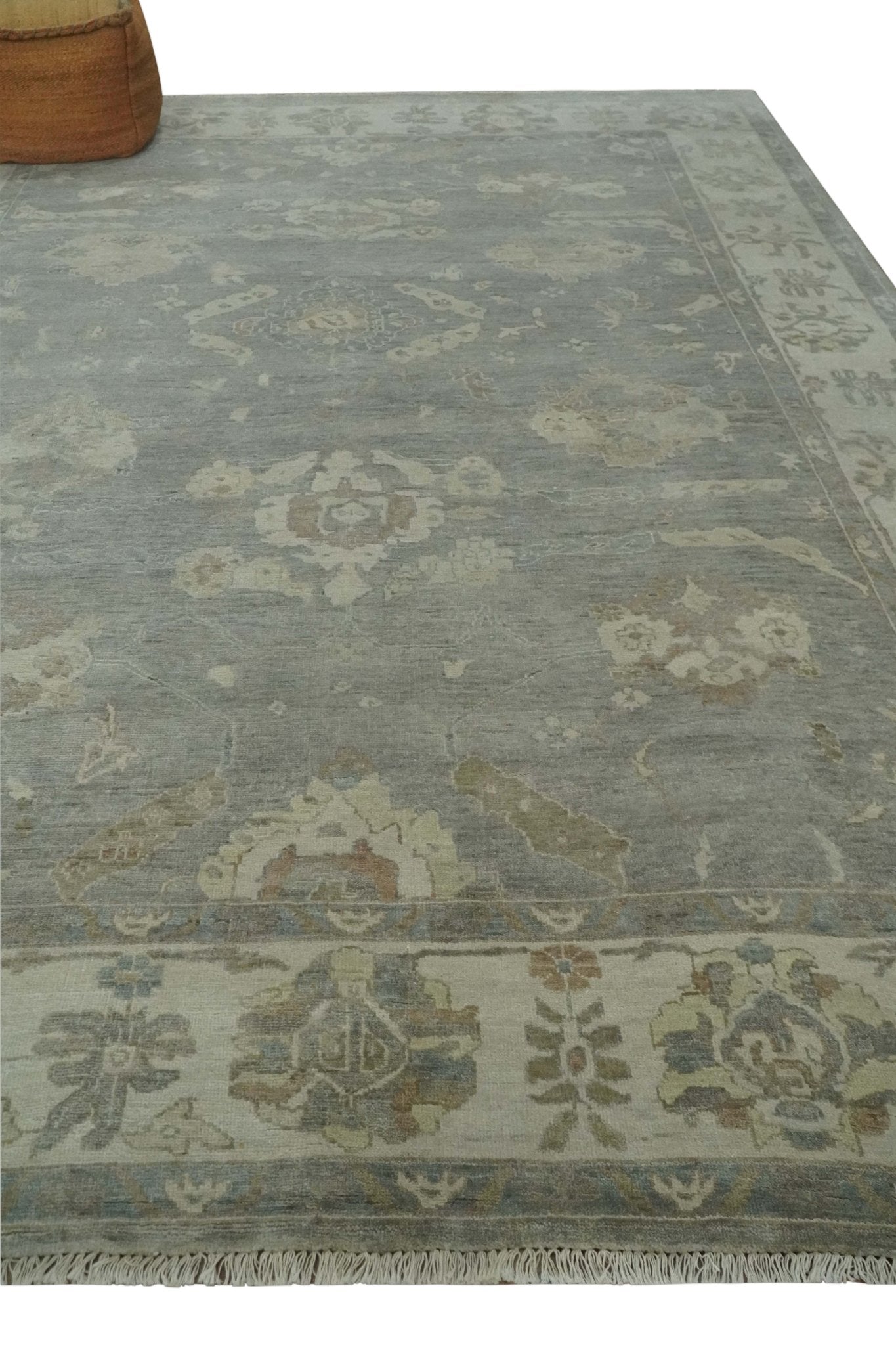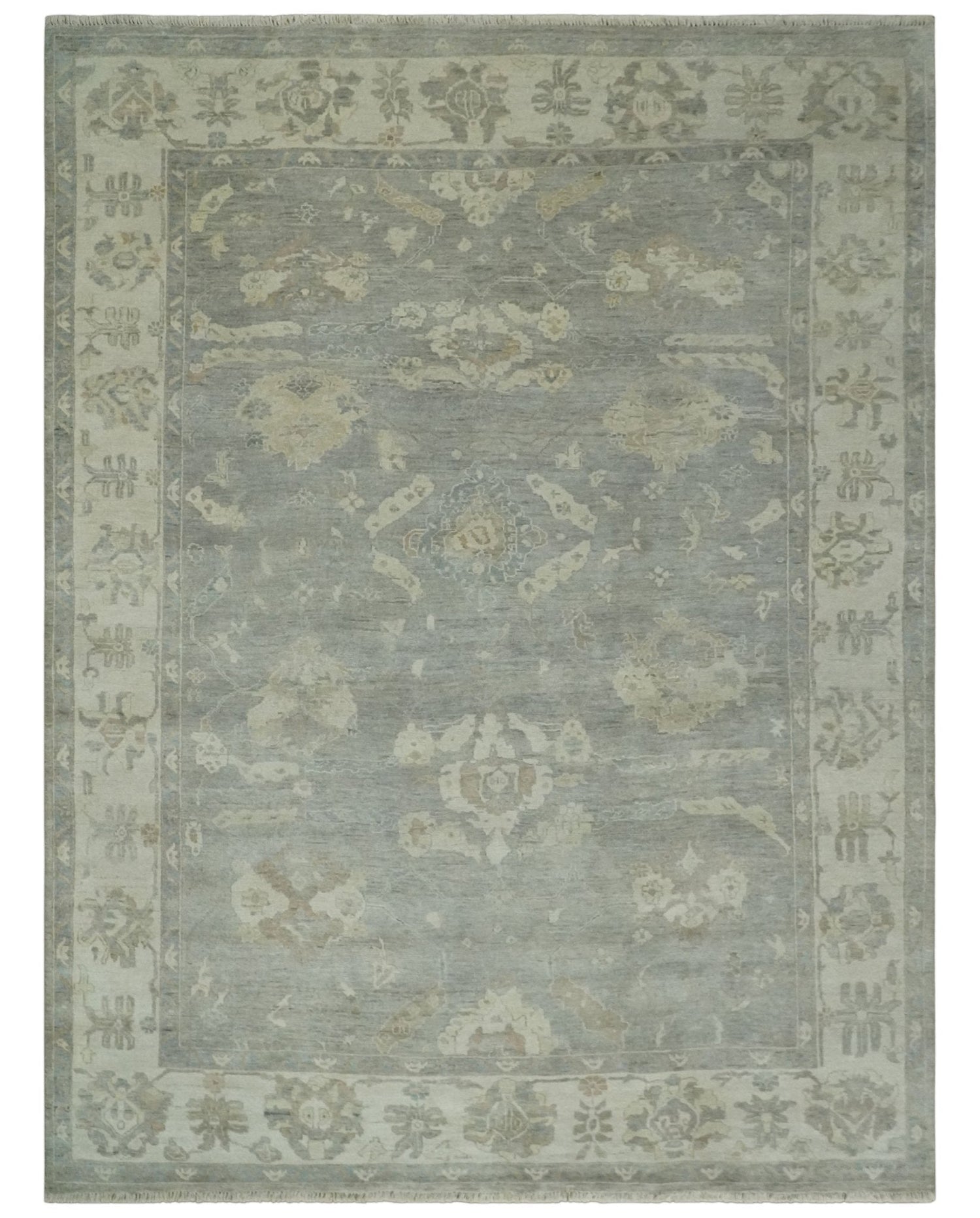 Antique style Gray and Beige 9x12 Hand knotted Oushak wool Area Rug