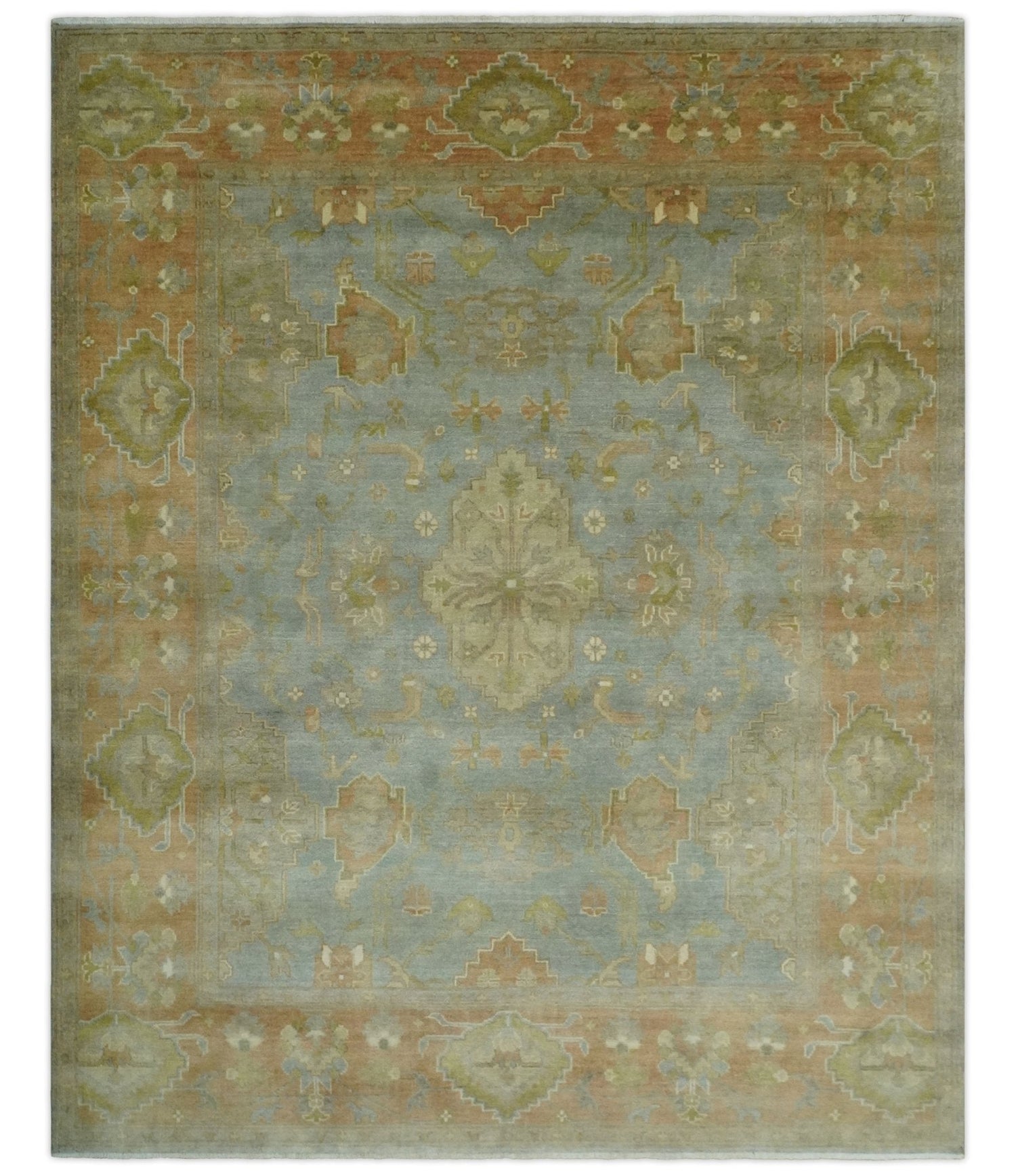 Antique style Gray, Rust and Green Hand Knotted 8x10 Oriental Oushak wool Area Rug - 8x10 is backordered and will ship as soon as it is back in stock.