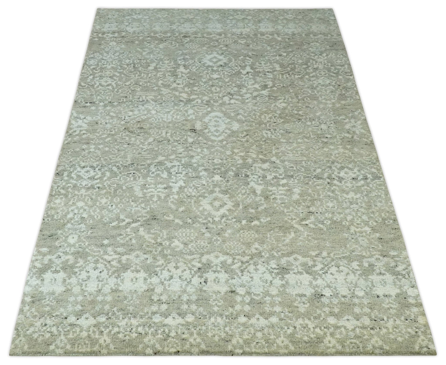 Antique style Ivory and Beige Hand Knotted Traditional Design 5x8 wool Area Rug - 5x8 is backordered and will ship as soon as it is back in stock.