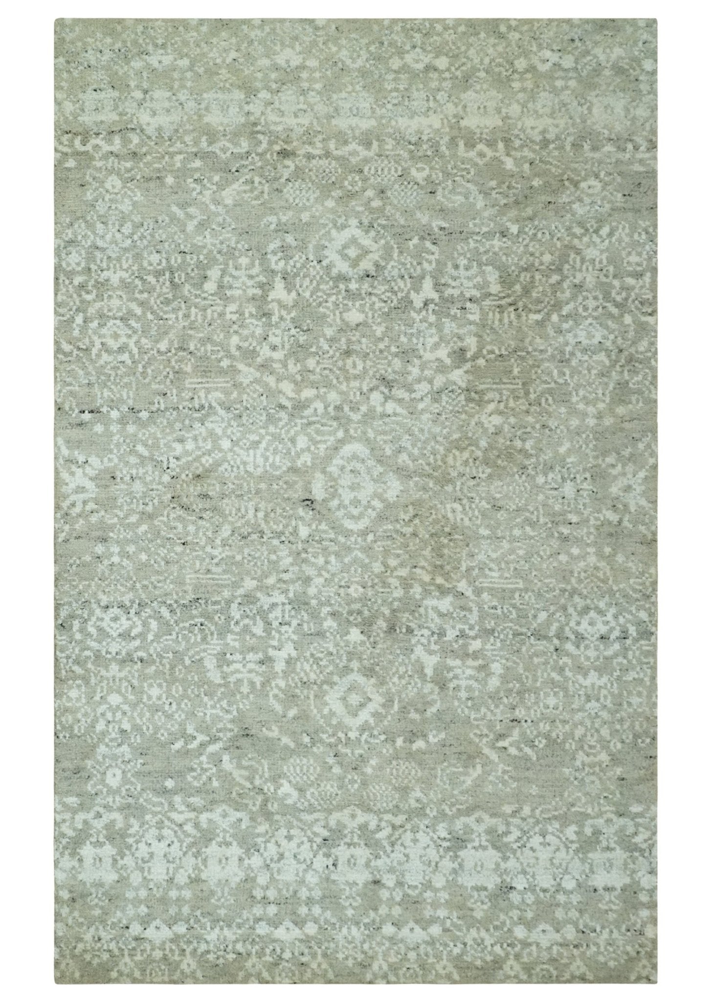 Antique style Ivory and Beige Hand Knotted Traditional Design 5x8 wool Area Rug