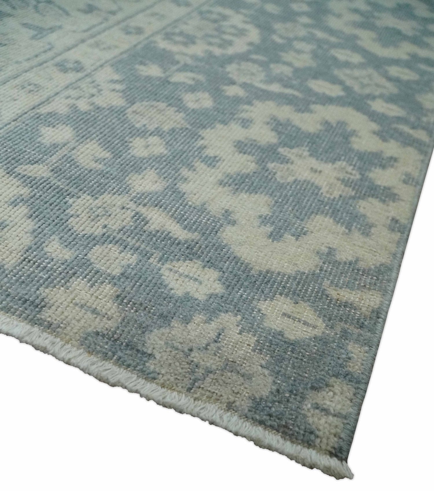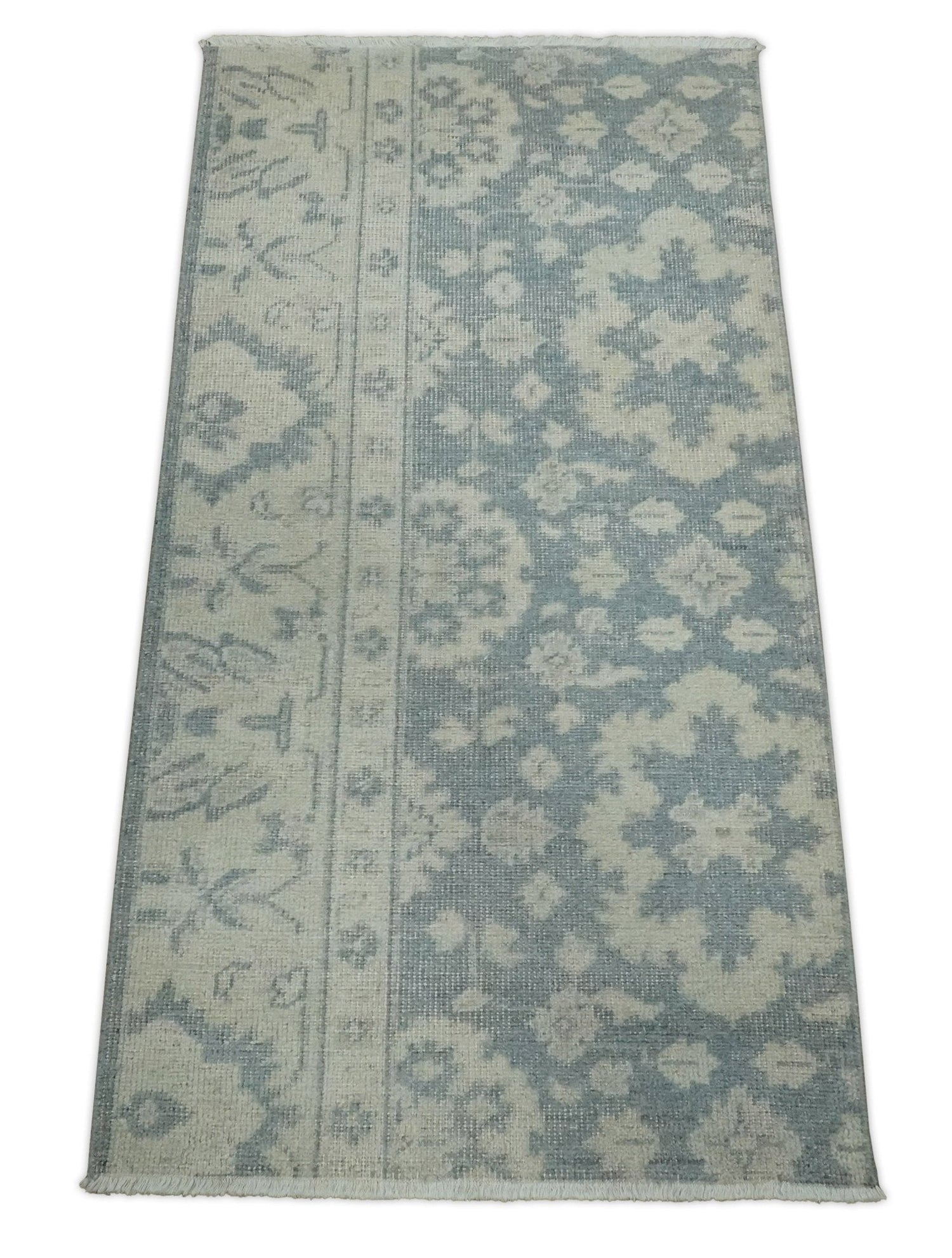 Antique Style Ivory and Charcoal Hand Knotted Traditional Oushak 2x4 wool Bedside Rug - 2x4 is backordered and will ship as soon as it is back in stock.