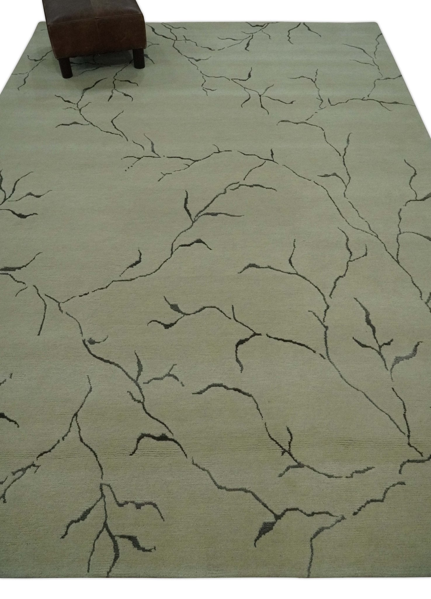 Beige and Charcoal Hand loom Crack Design 6x9 wool and Art Silk Area Rug