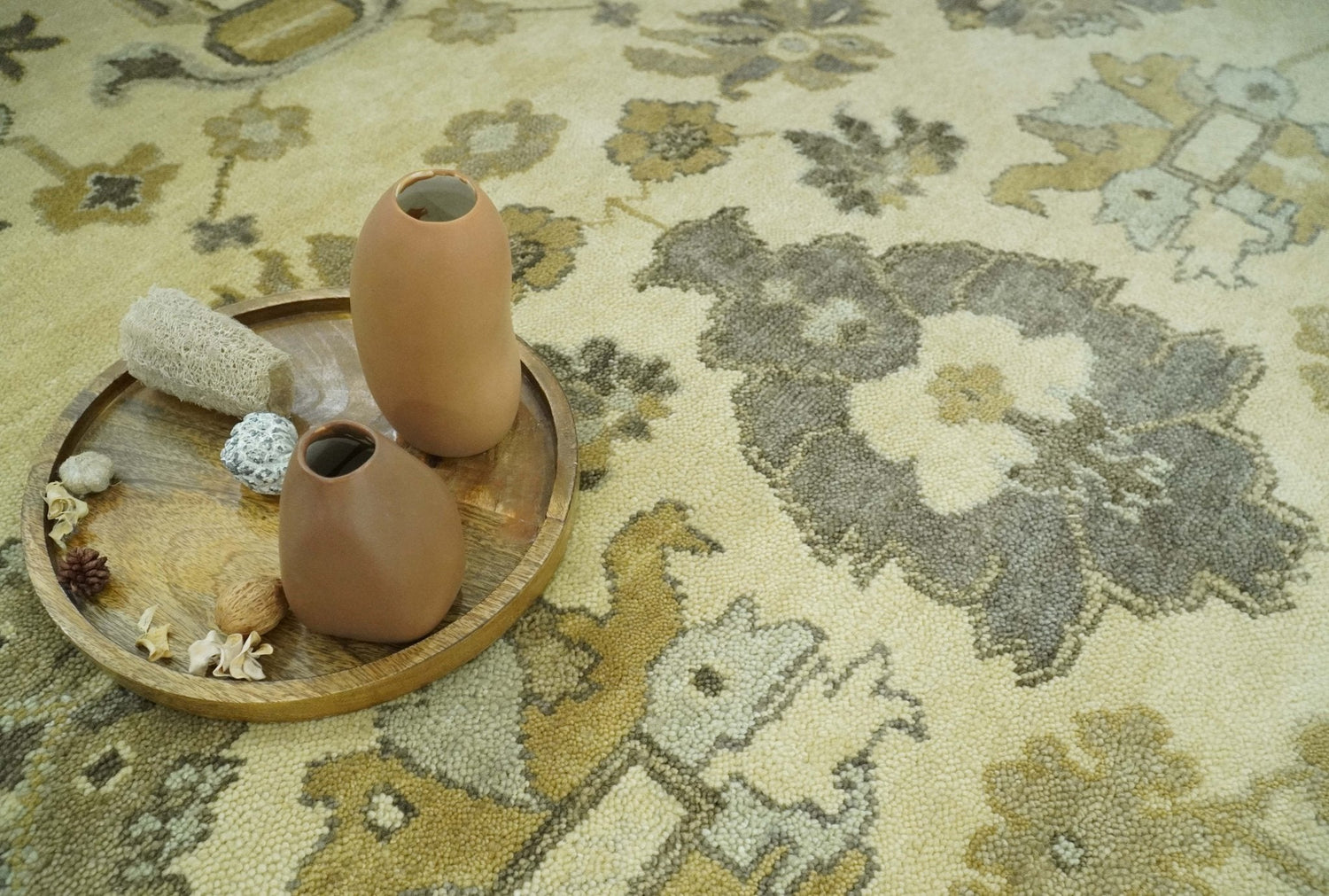 Beige and Gray 8x10 Hand Knotted Traditional Oriental Oushak Wool area rug - 8x10 is backordered and will ship as soon as it is back in stock.