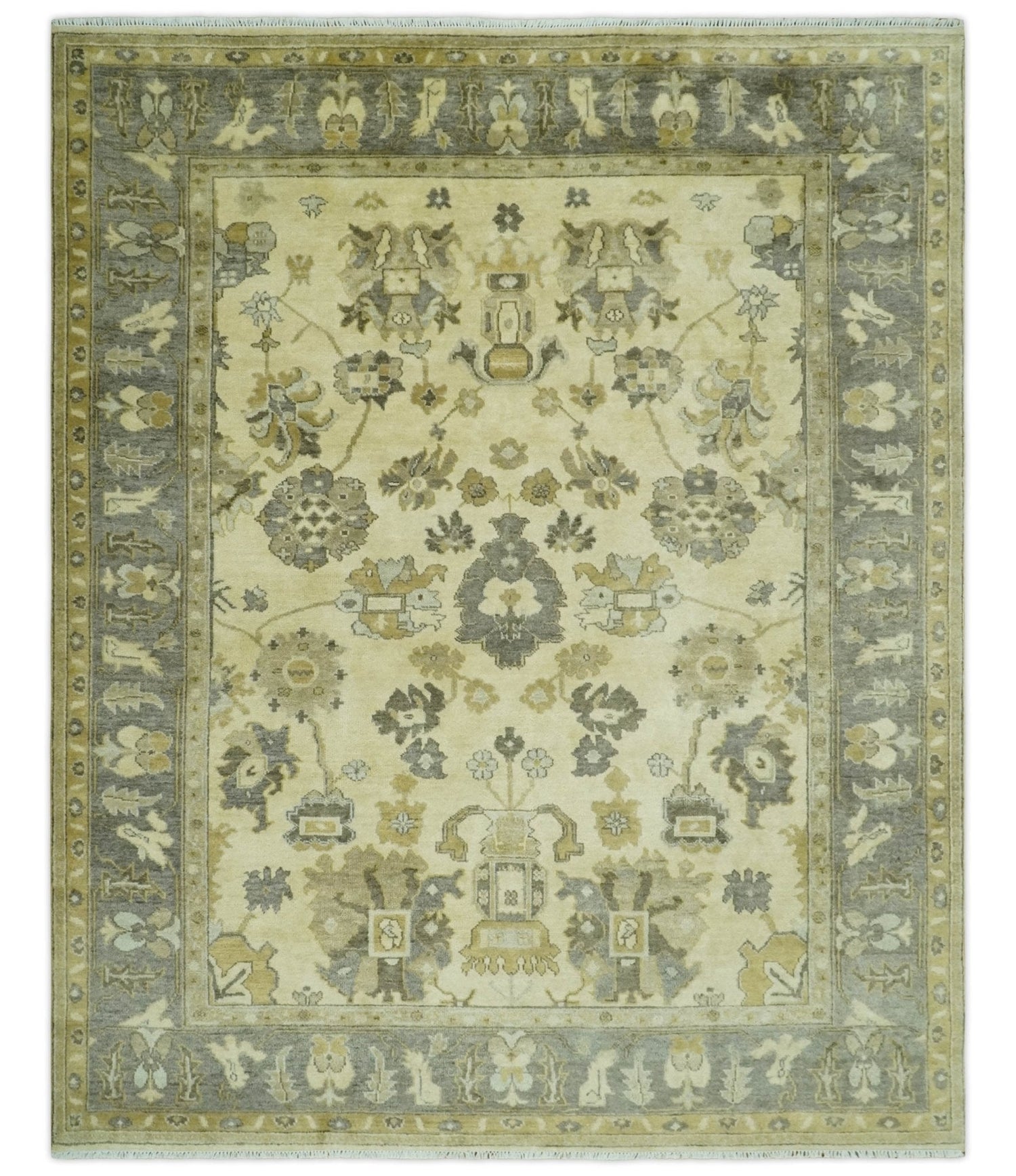 Beige and Gray 8x10 Hand Knotted Traditional Oriental Oushak Wool area rug