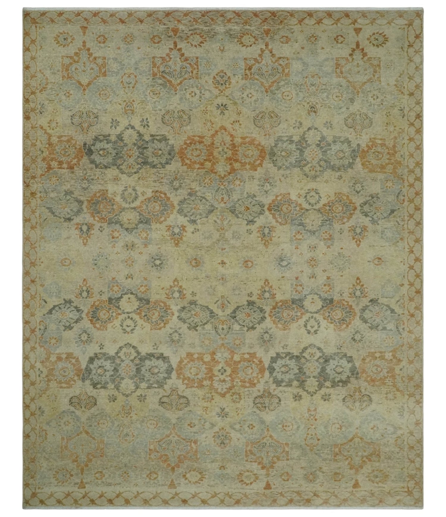 Beige and Rust 8x10 Textured Low Pile Hand Knotted Traditional Wool Area Rug - 8x10 is backordered and will ship as soon as it is back in stock.