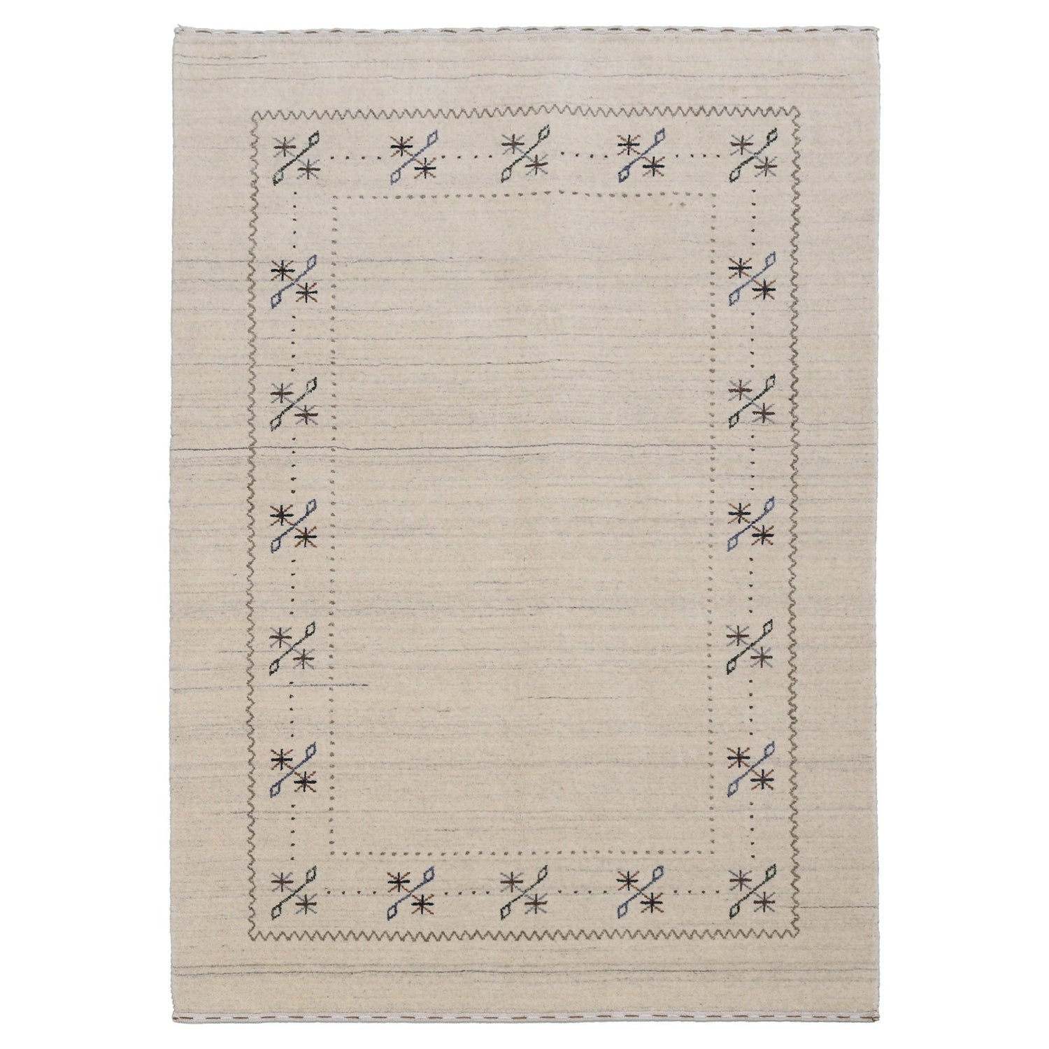 Beige Gabbeh Border Design Hand Loomed Wool Area Rug