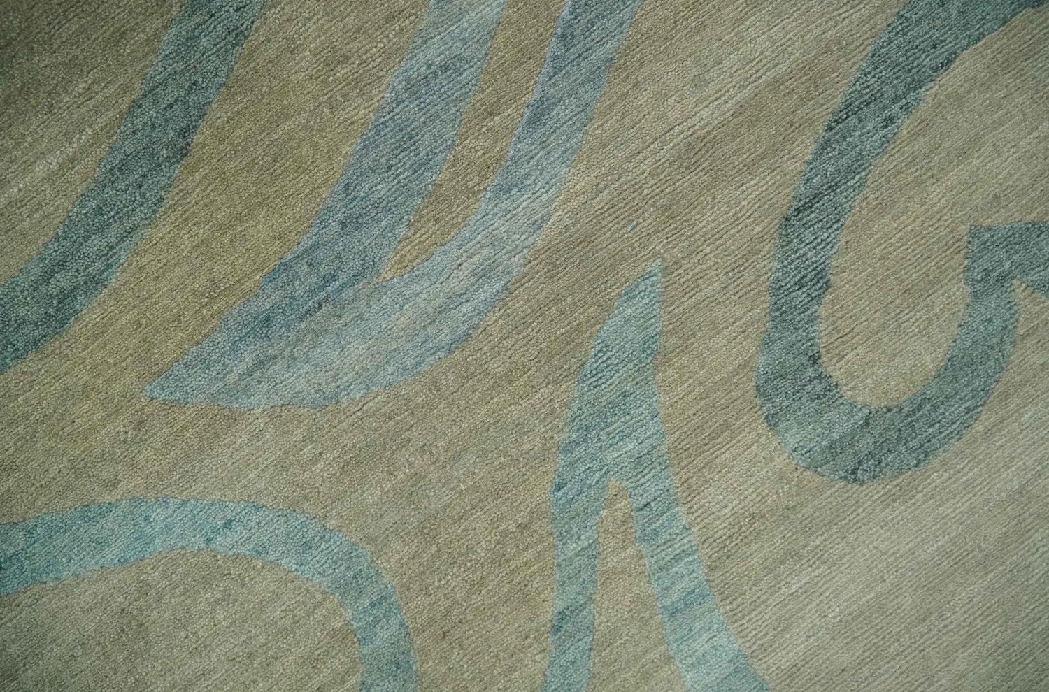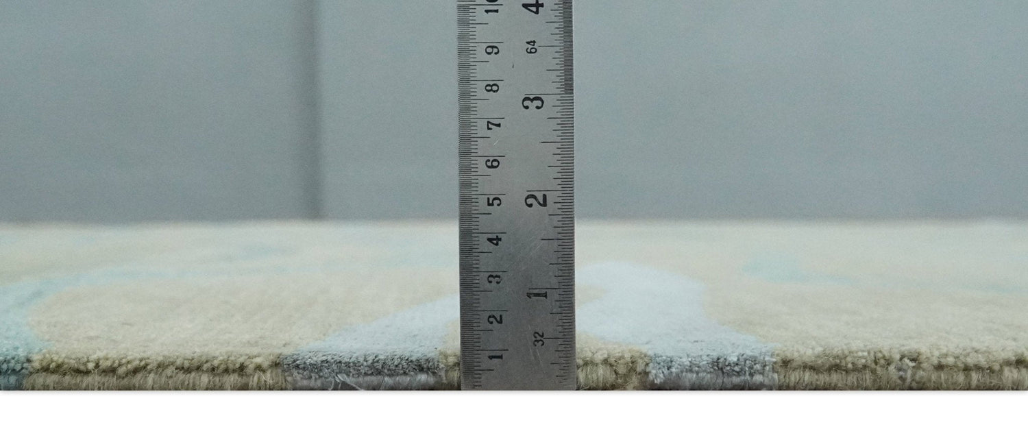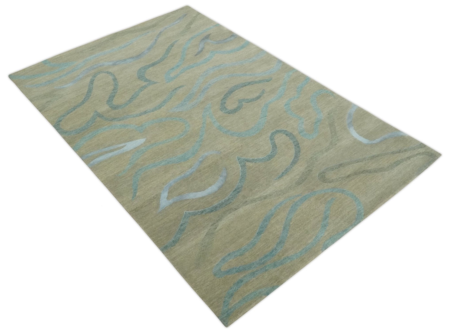 Beige, Teal and Silver Modern design Hand knotted 6x9 wool and Art Silk Area Rug