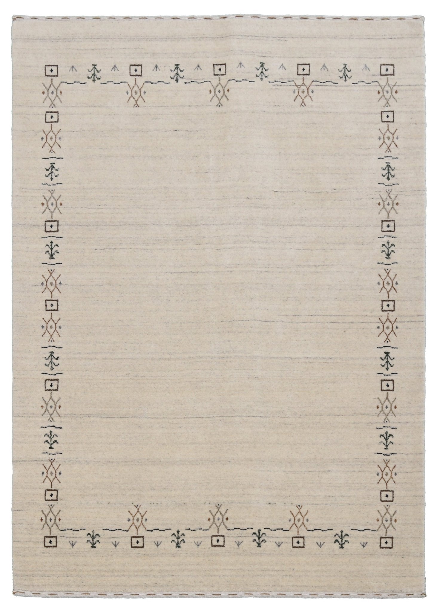 Beige Tribal Border Hand Loomed Wool Area Rug