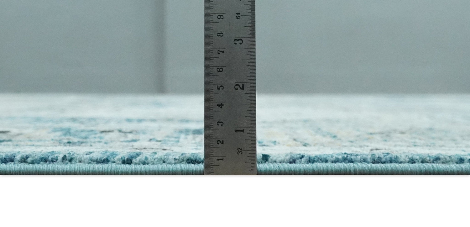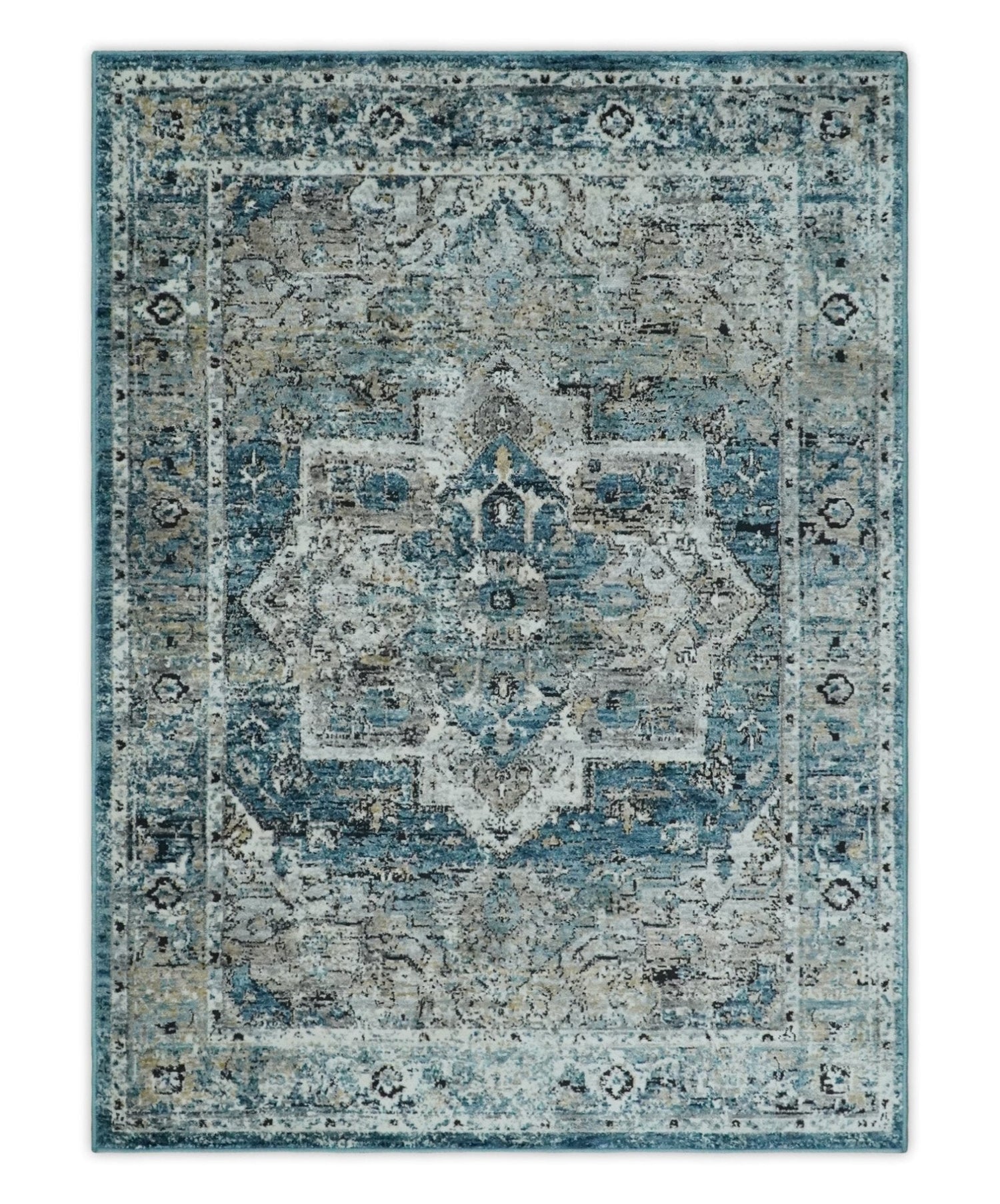 Blue, Beige and Black Antique Finish, Vintage look, Art Silk Area Rug, Living Room Rug | TRDMM1