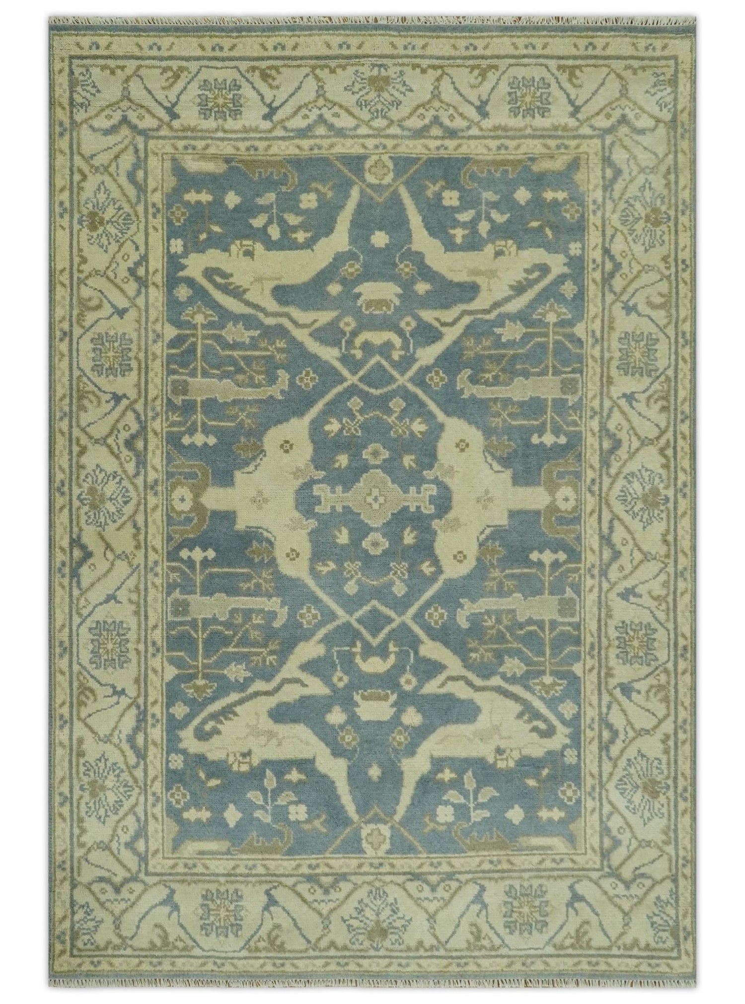 Charcoal, Beige and Olive 6x9 Hand Knotted Traditional Oriental Oushak wool rug