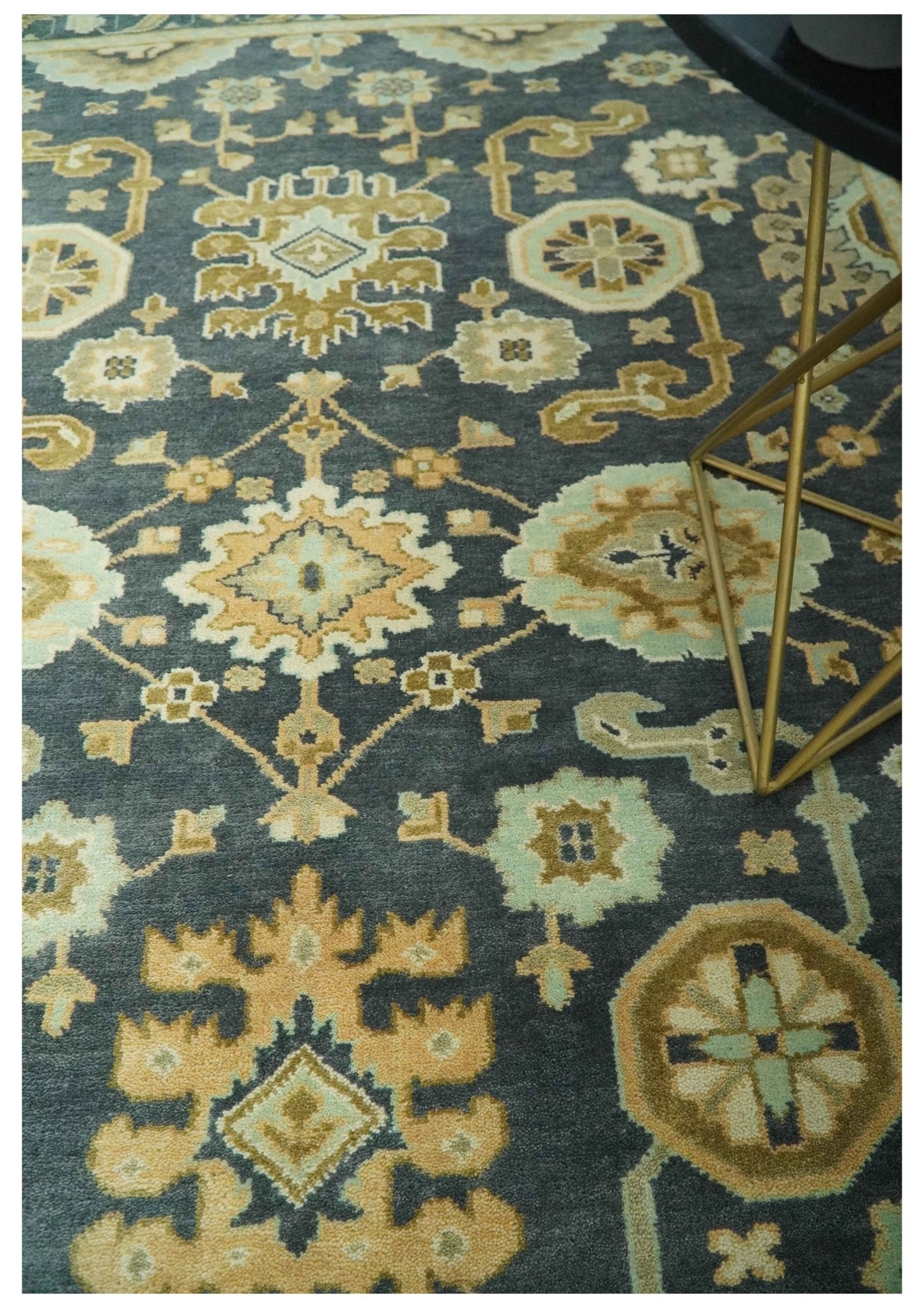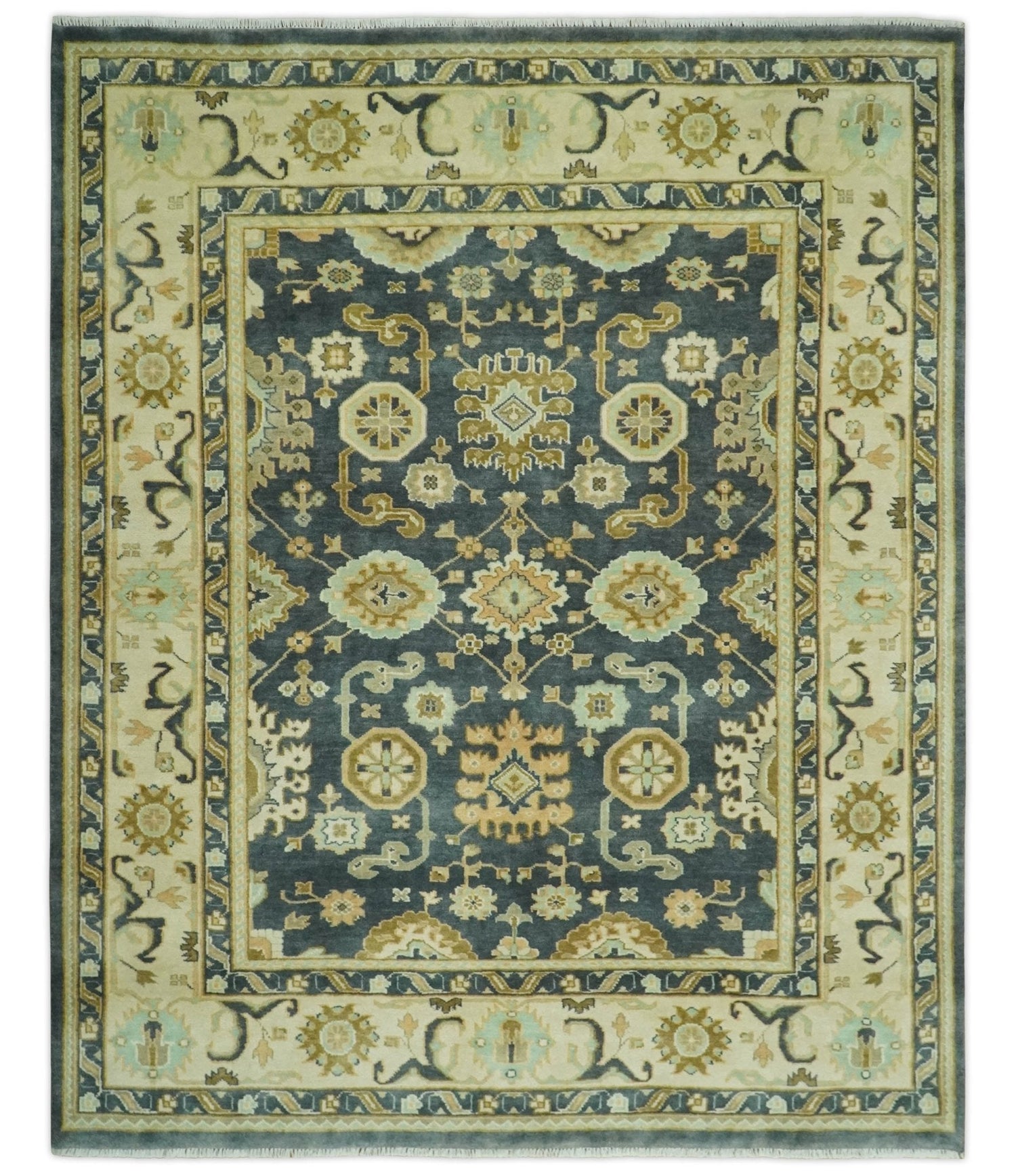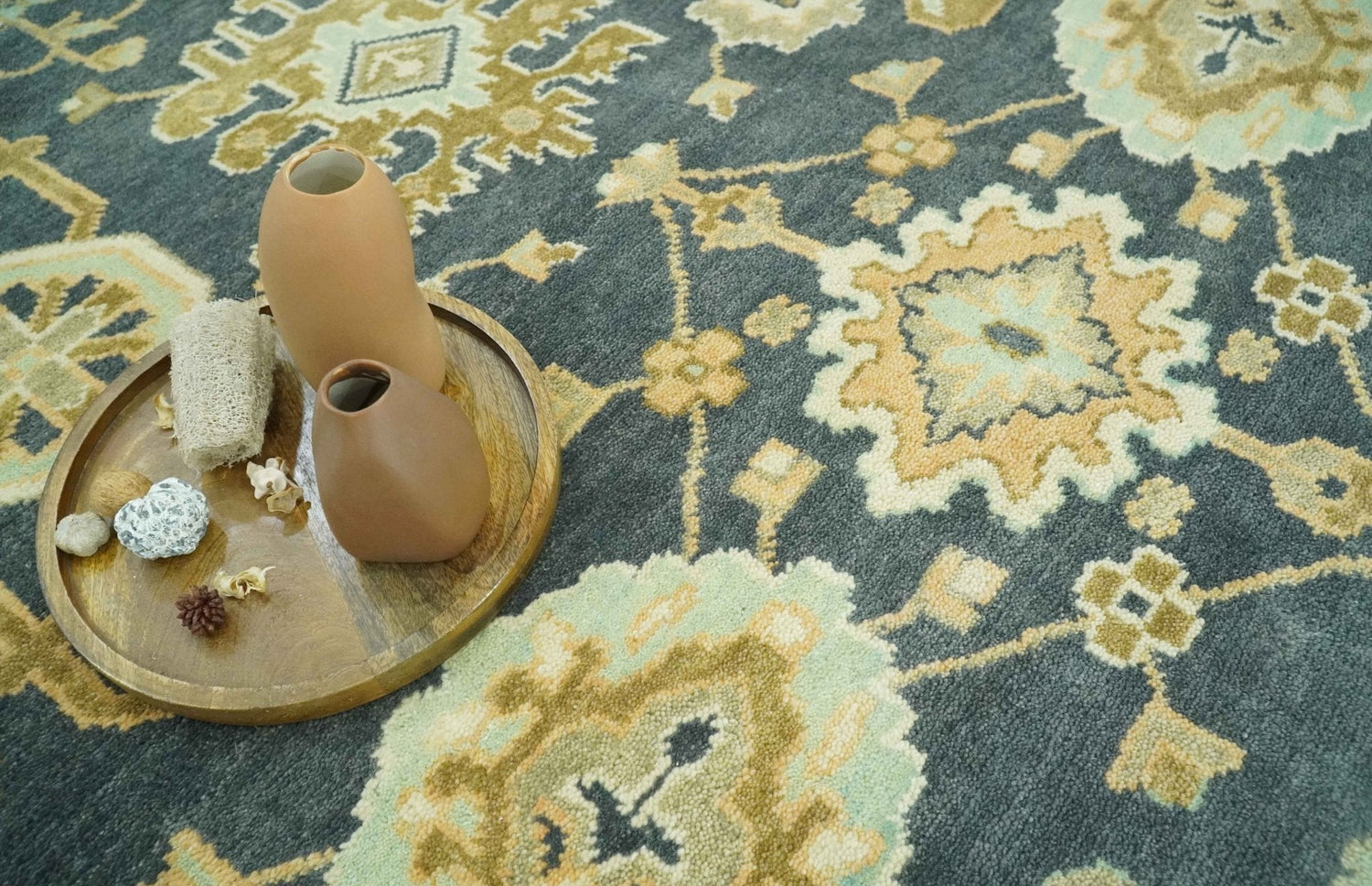 Charcoal, Beige and Olive Hand Knotted 8x10 Turkish Style Oushak Wool Area Rug