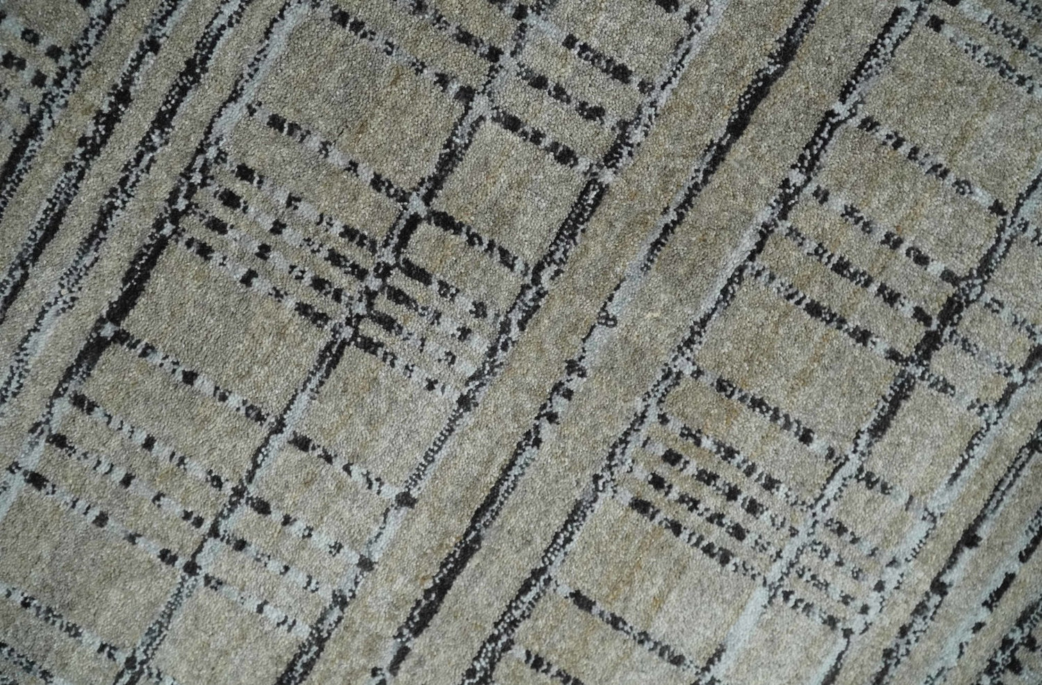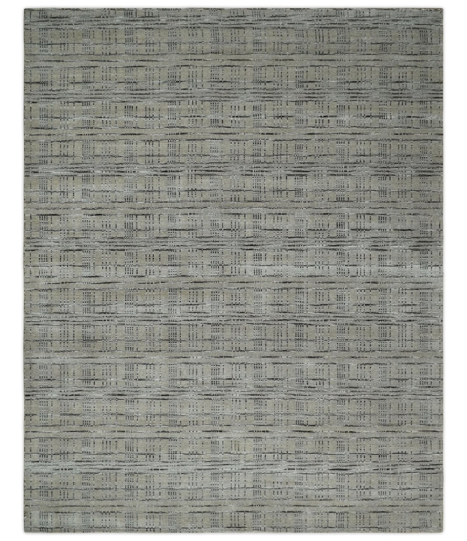 Checkered 8x10 Hand Made Gray, Black and Silver Scandinavian Blended Wool Flatwoven Area Rug | KE37