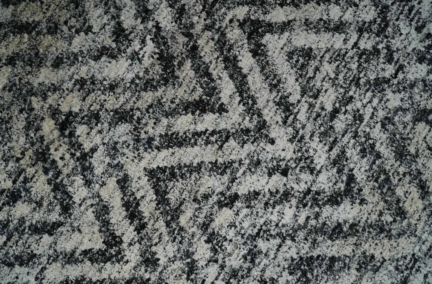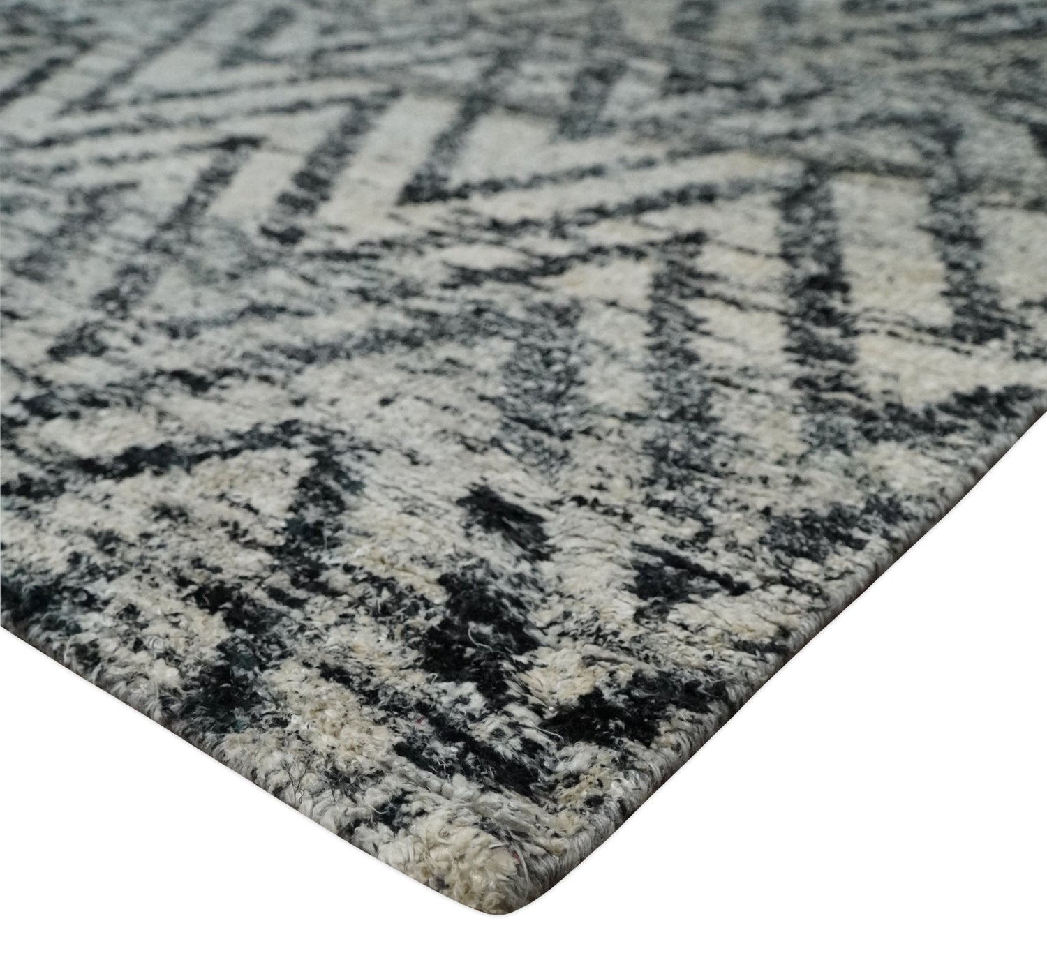 Chevron Silver and Black Shaded Scandinavian 5x8 Bamboo Silk Flatwoven Area Rug | HL36