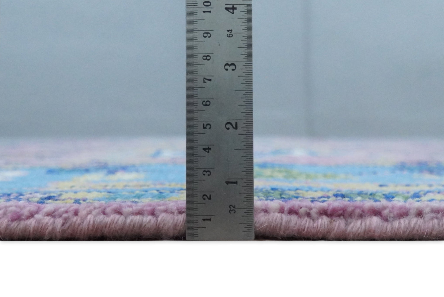 This wool rug is an authentic piece of traditional style decor. Featuring vibrant pink and blue coloring, it is hand-knotted and available in Multi sizes. The vintage design and wool carpet will make any space look unique and inviting.