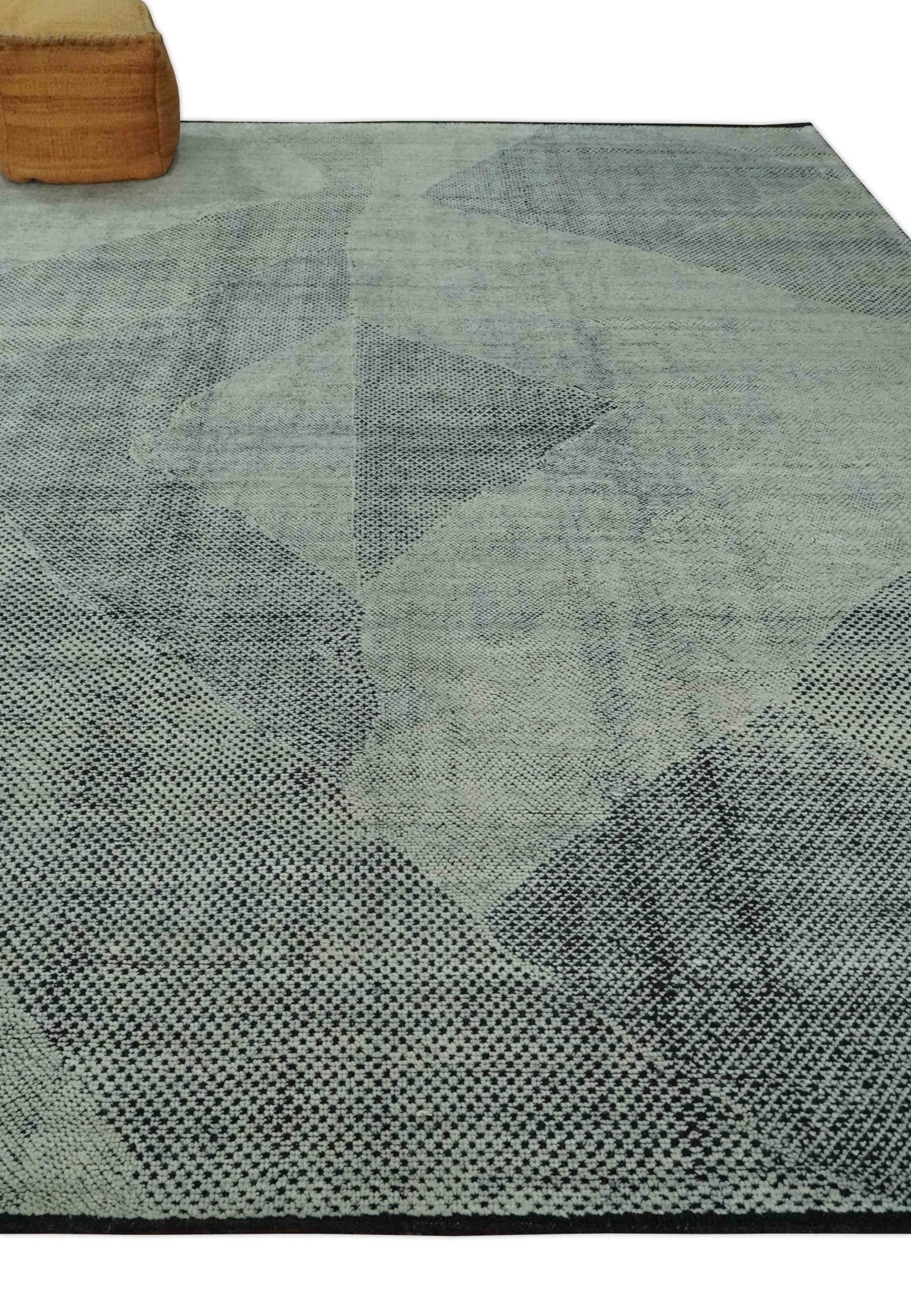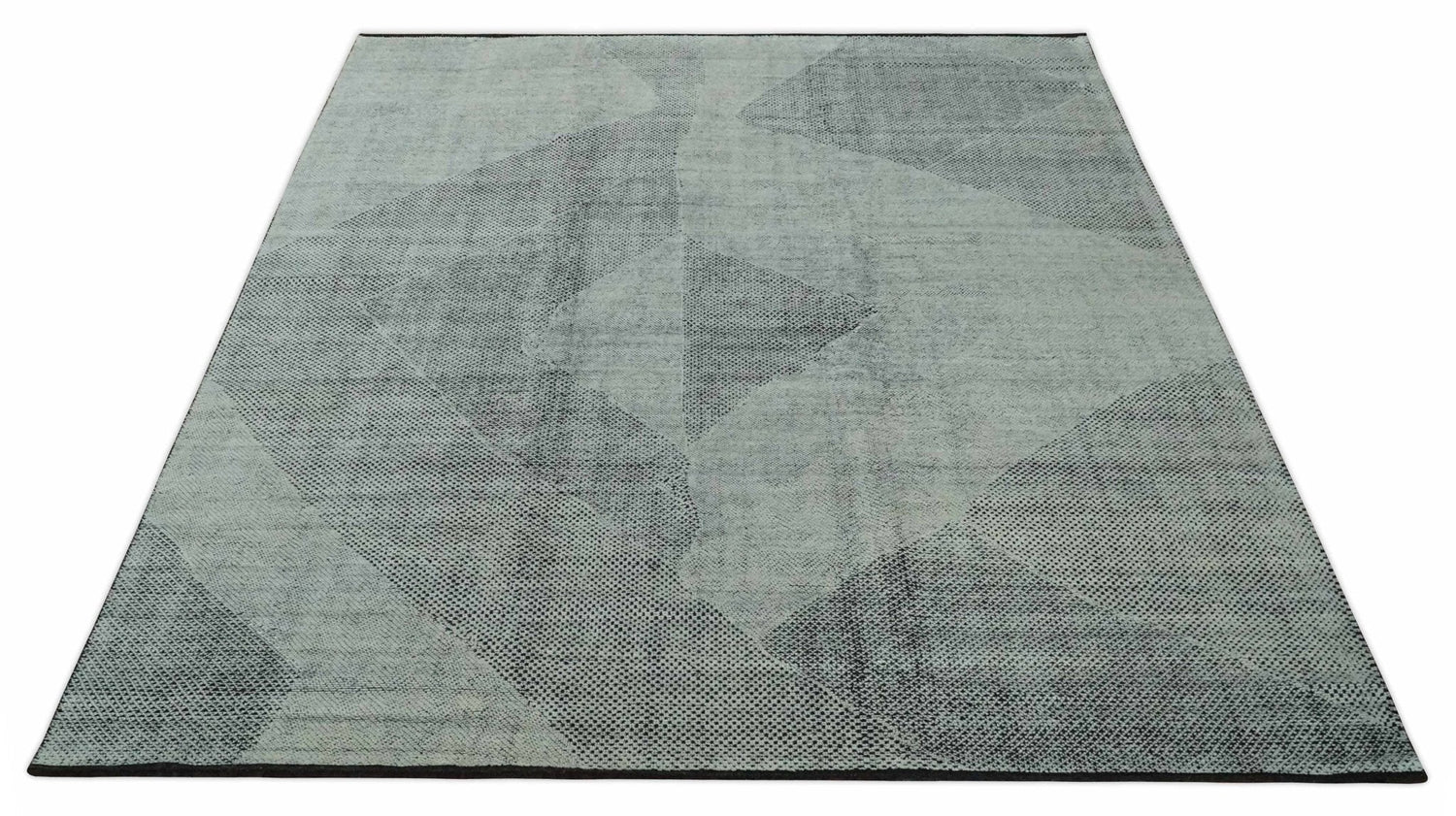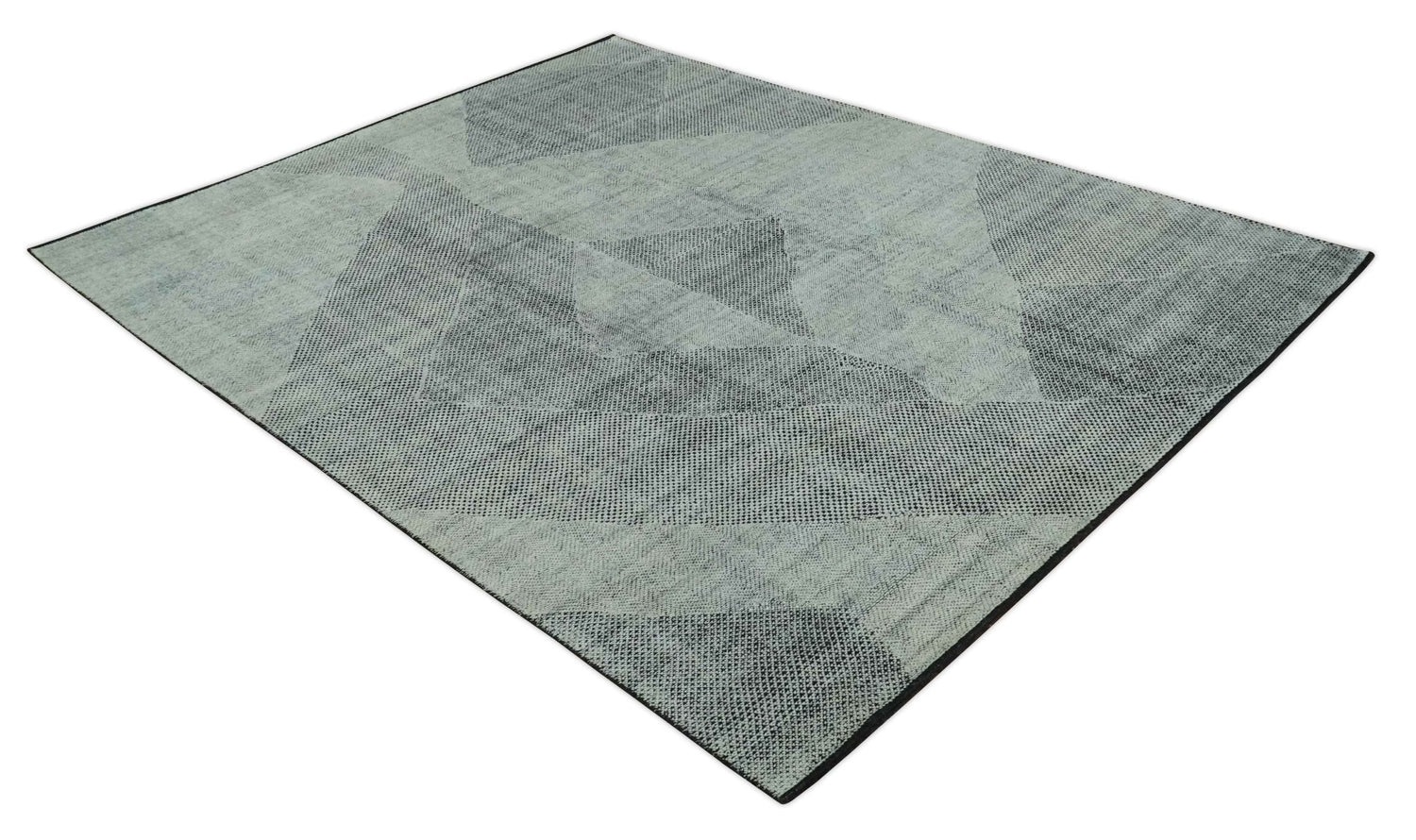 Contemporary Charcoal, Silver and Beige Design 9x12 Hand knotted wool Area Rug