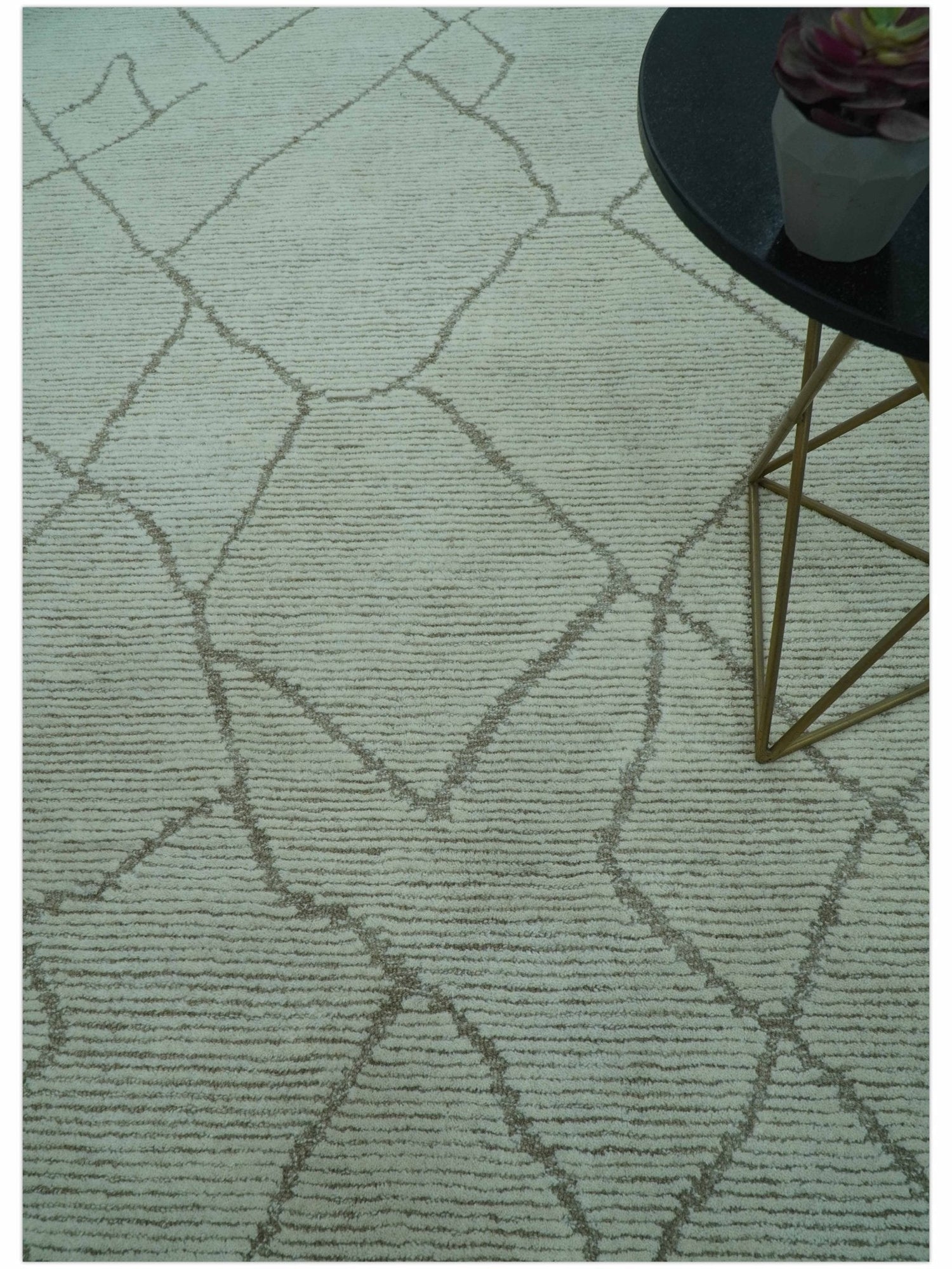 Contemporary Pattern Brown And Ivory Hand Tufted 8x10 Wool Rug