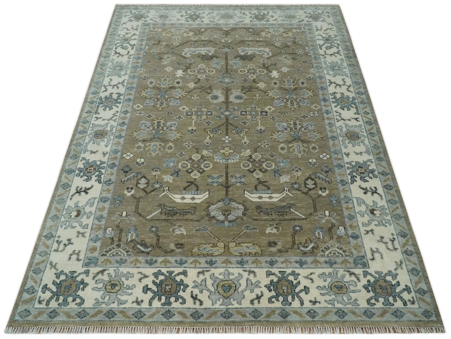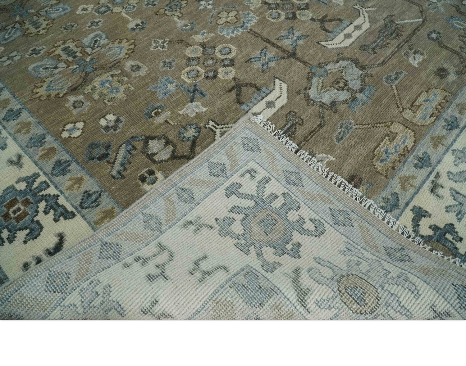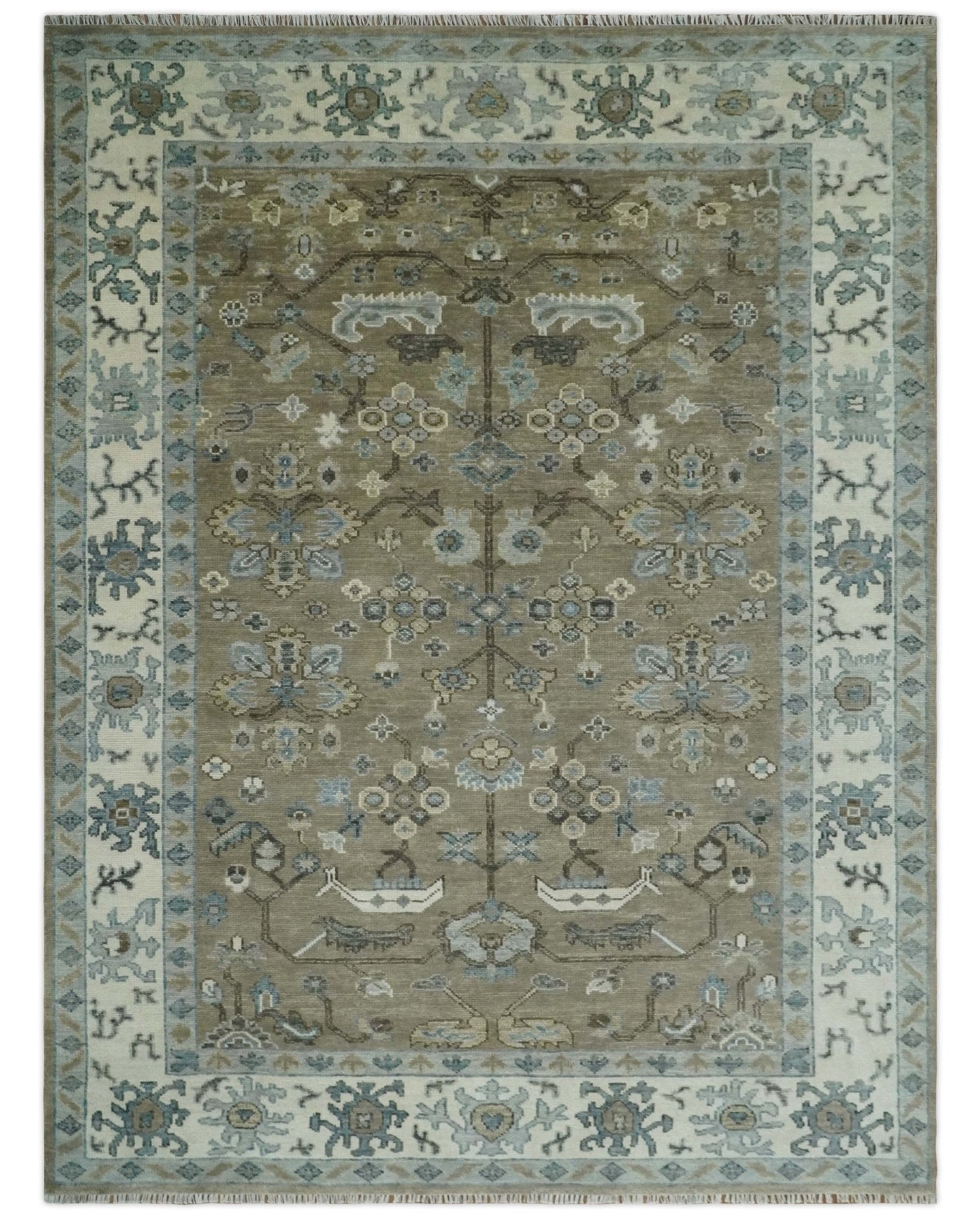 Custom Made Antique look Hand Knotted Beige, Ivory and Silver Oriental Oushak Multi Size Traditional Wool Area Rug
