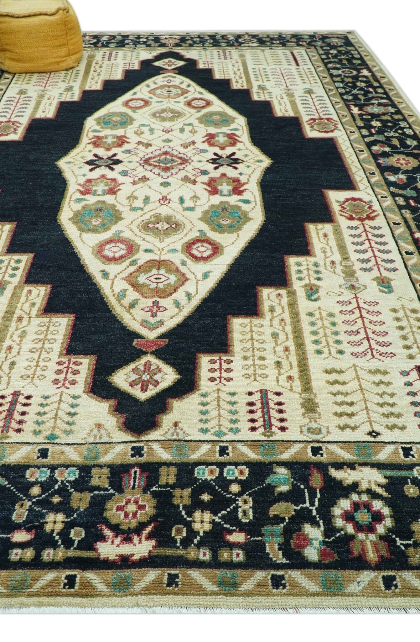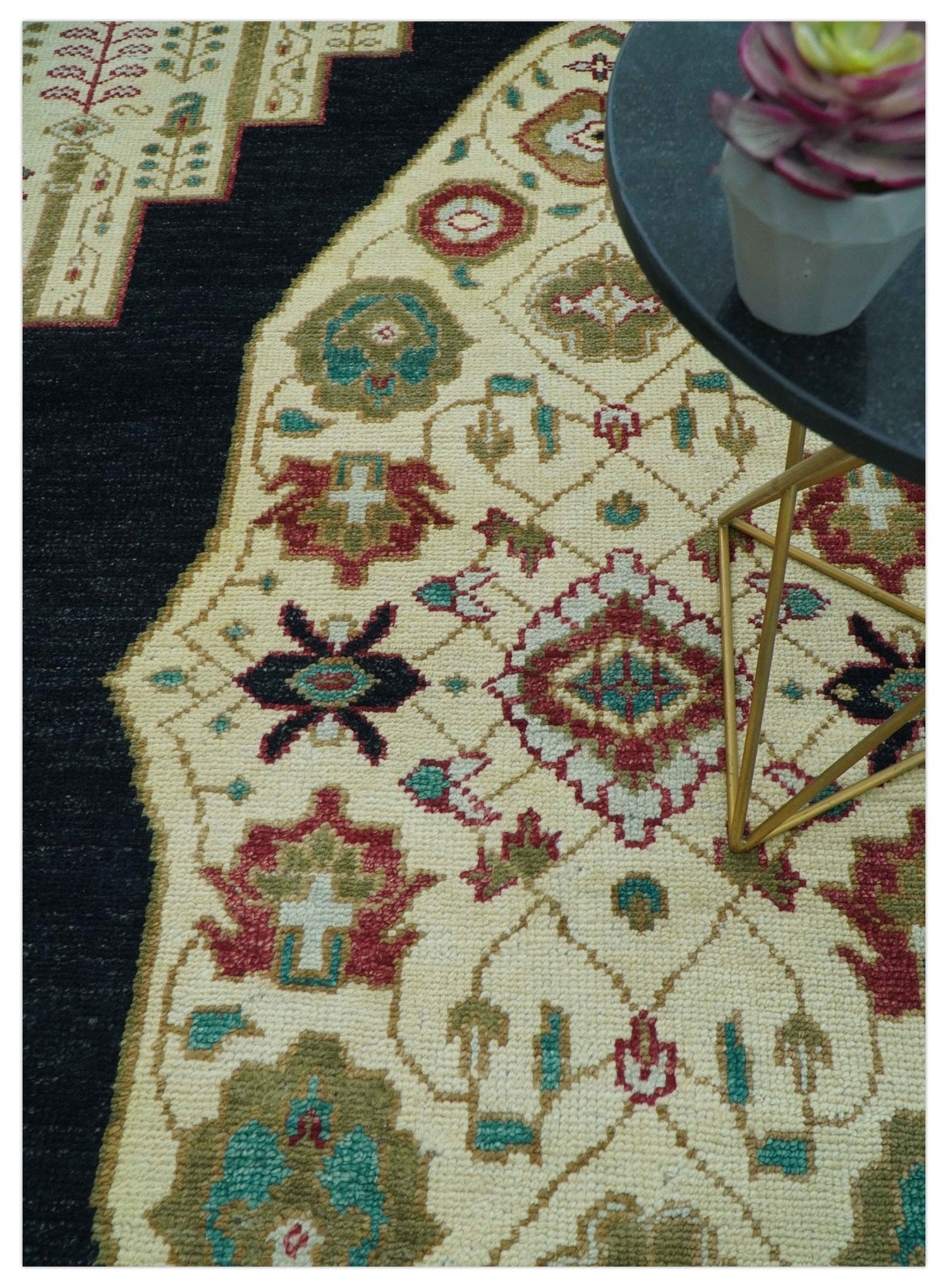 Custom Made Black And Ivory Traditional Serapi Design Hand Knotted Wool Rug