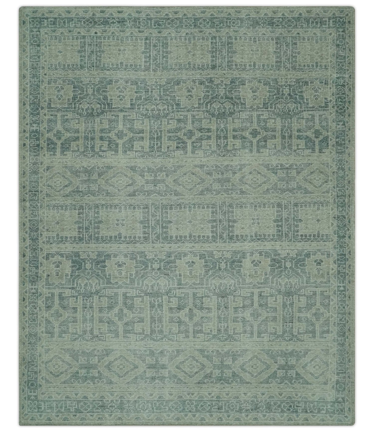 Custom Made Gray, Beige and Silver Hand Knotted Tribal Design wool area rug