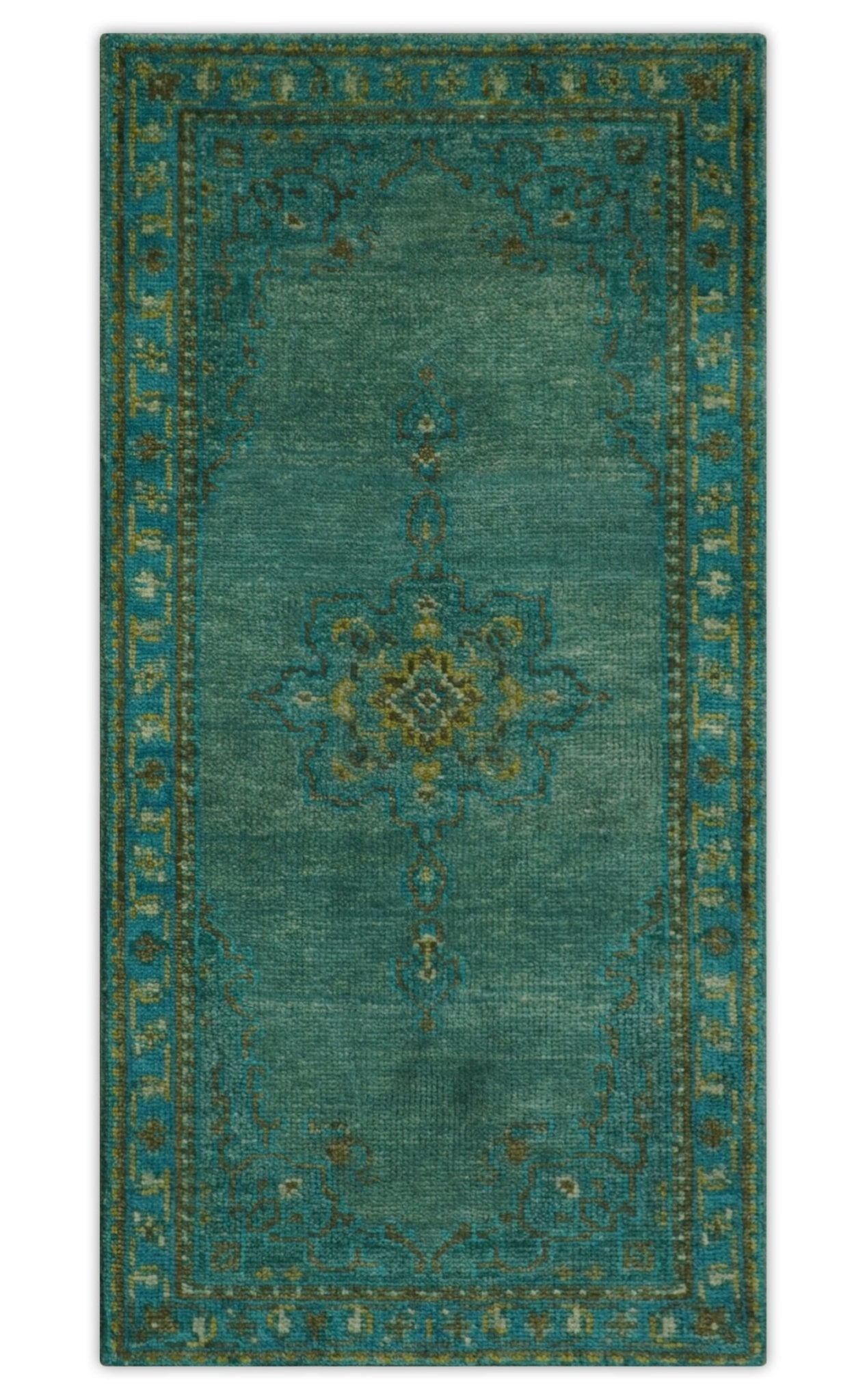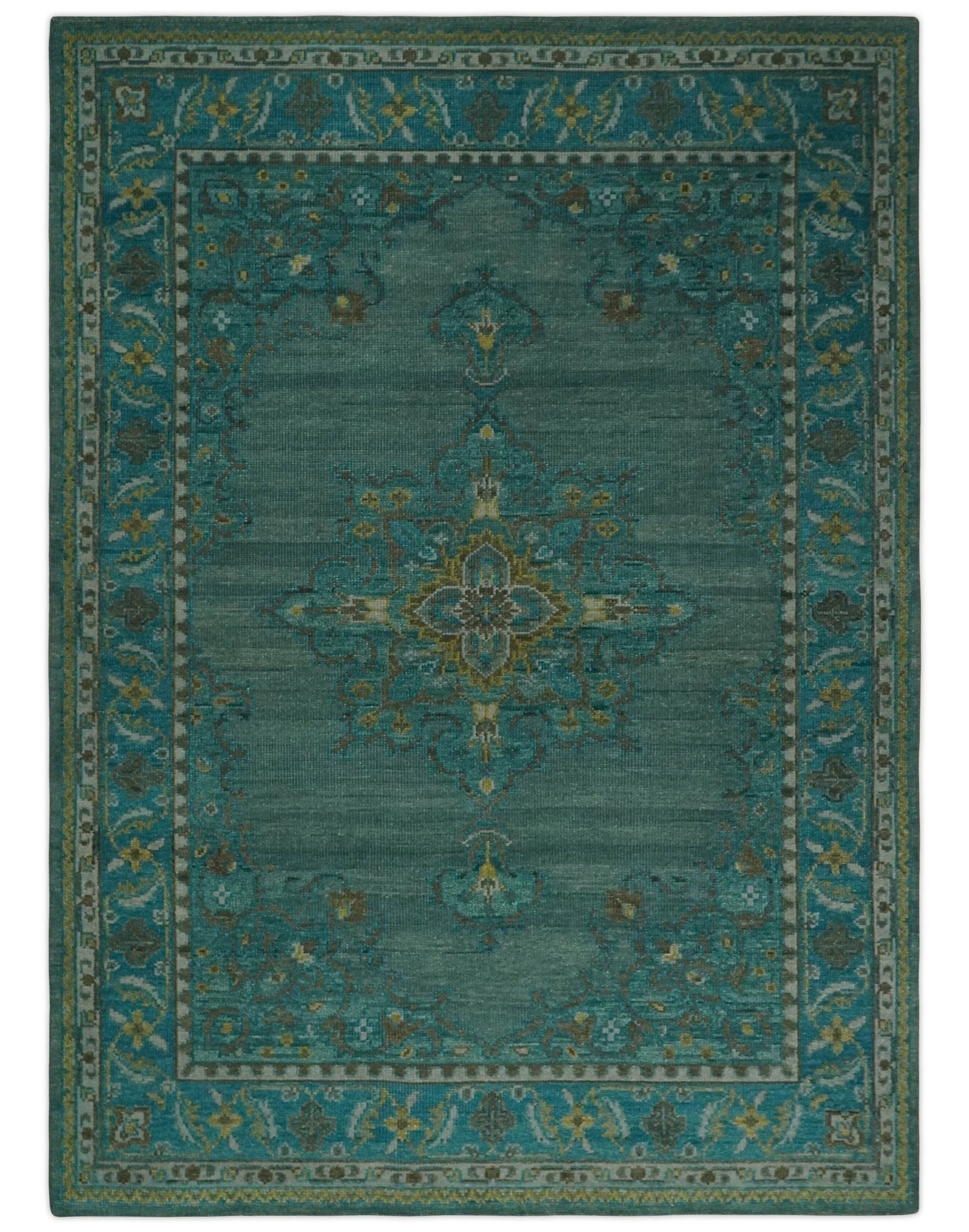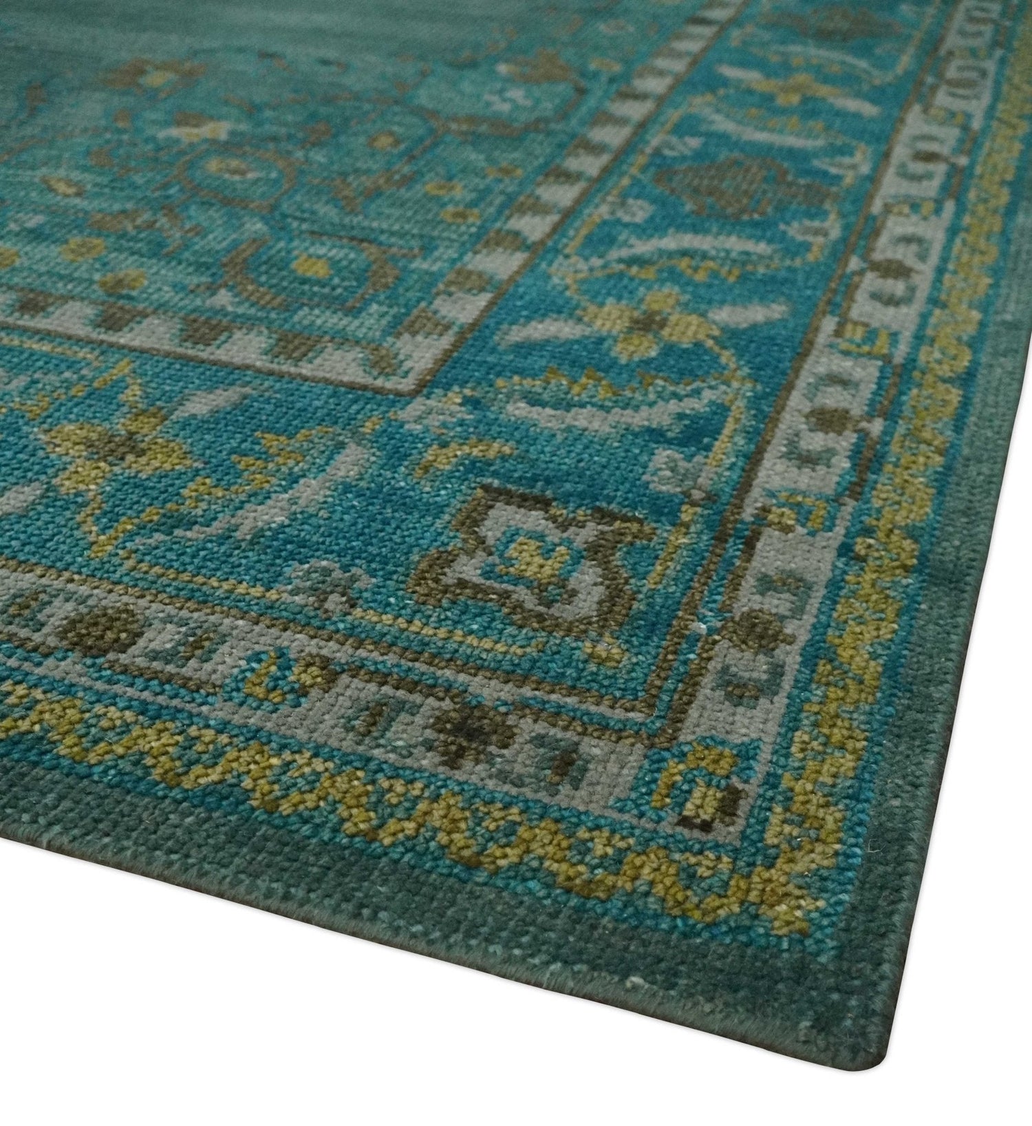 Custom Made Green Hand Knotted Antique Style Multi Size Traditional Wool Rug