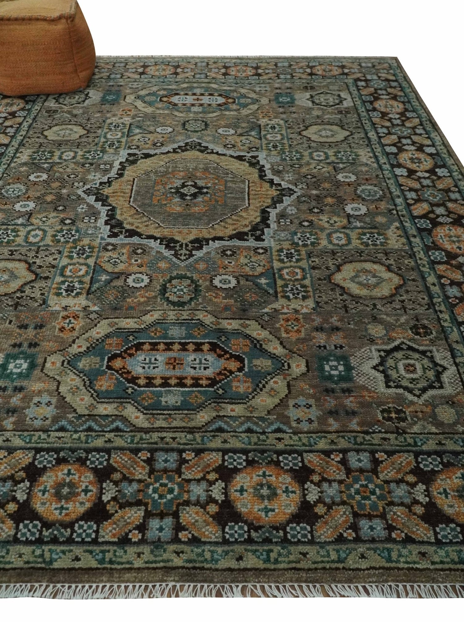 Custom Made Hand Knotted Brown, Black and Silver Traditional Wool Rug