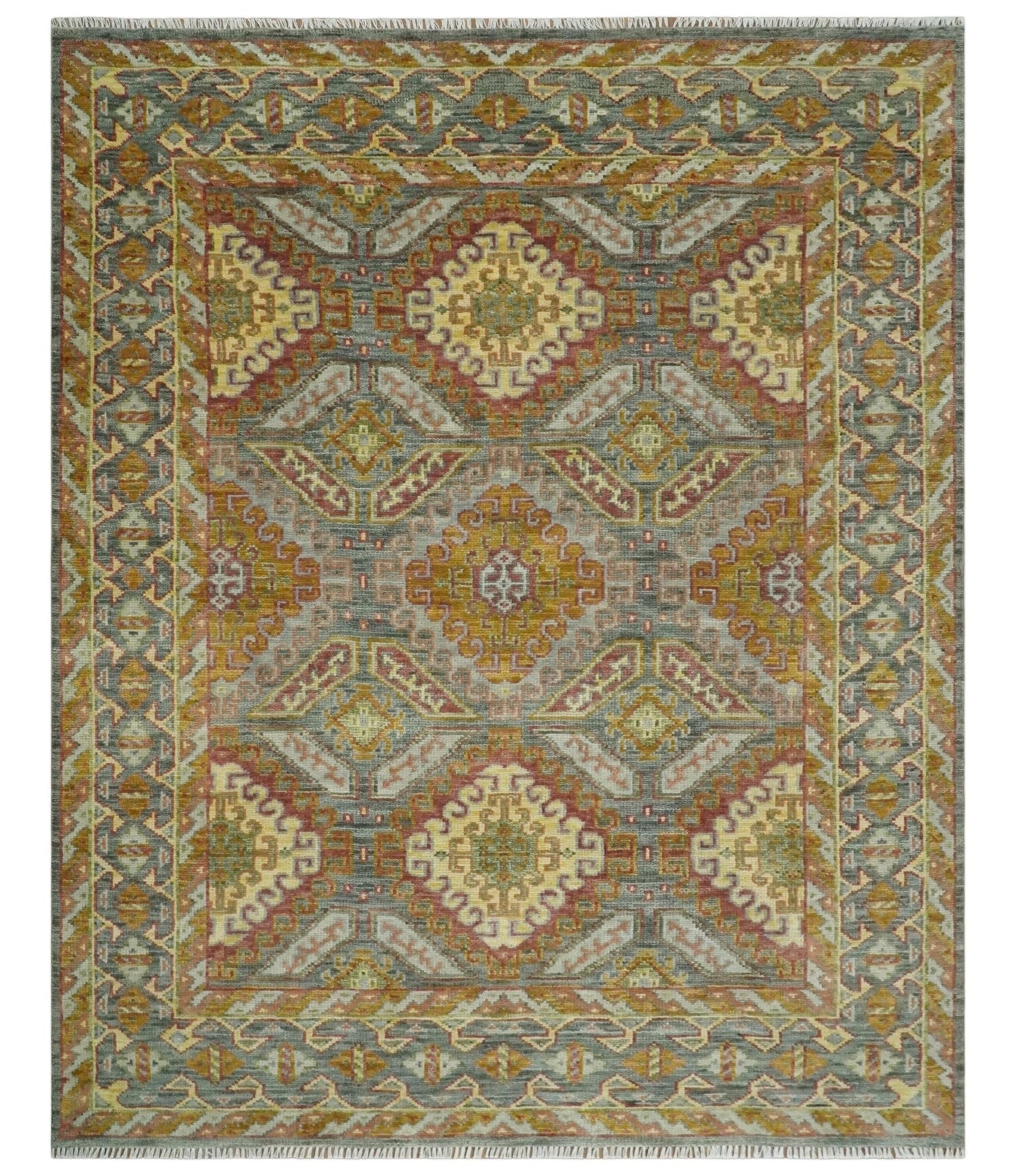 Custom Made Hand Knotted Gold and Gray Multi Size Oriental Traditional Wool Area Rug