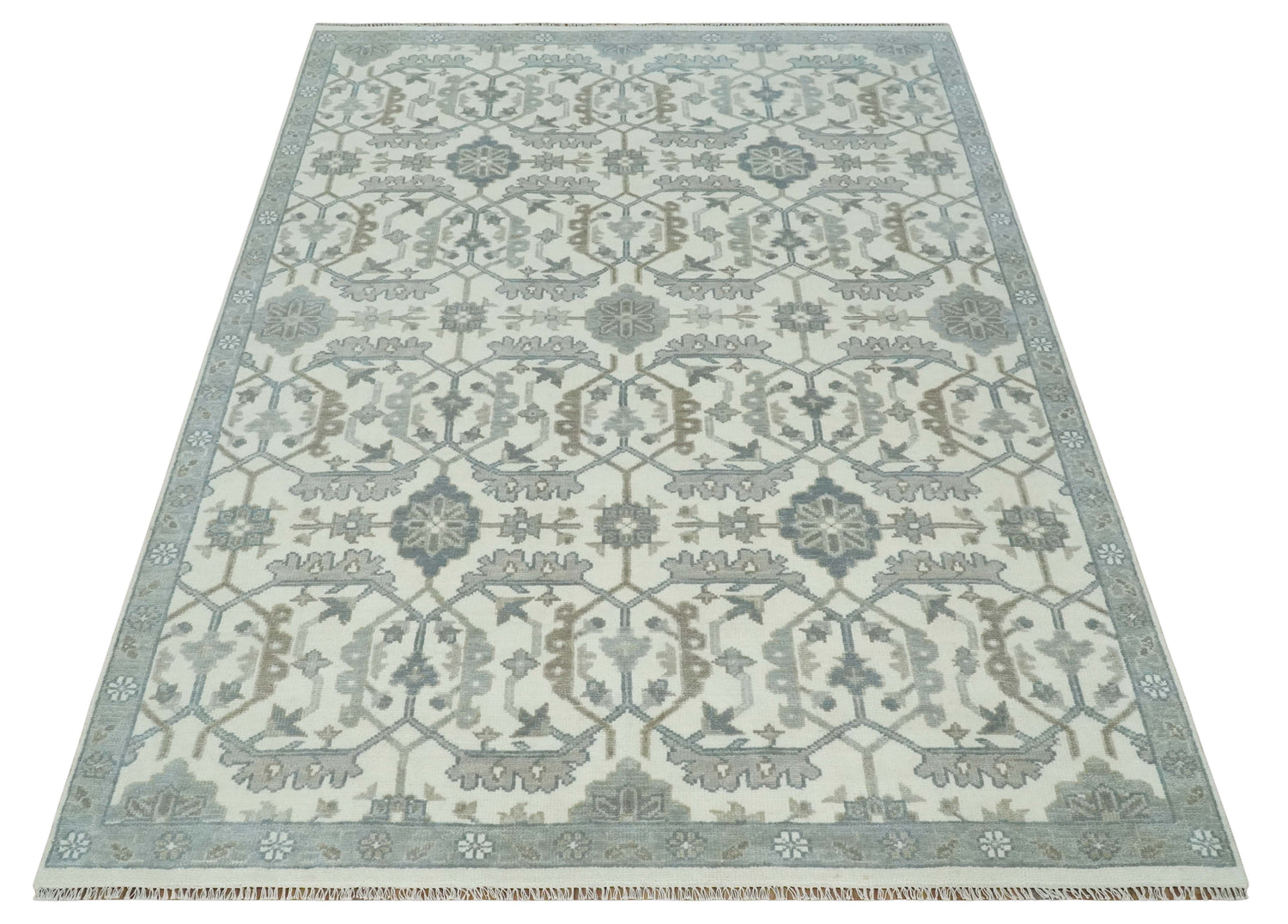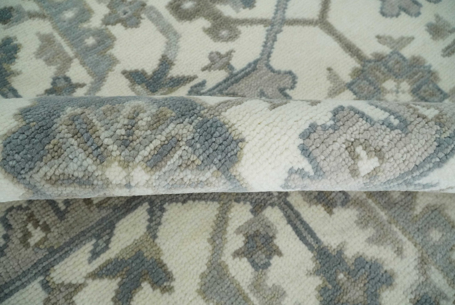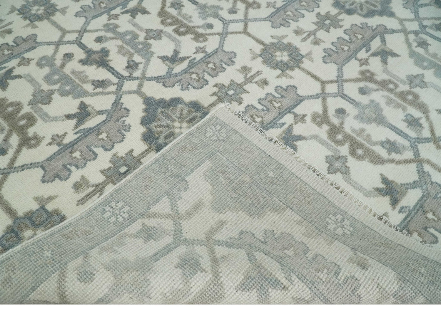 Custom Made Hand Knotted Ivory and Silver Oriental Oushak Multi Size Traditional Wool Area Rug, Living Room and Bedroom Rug
