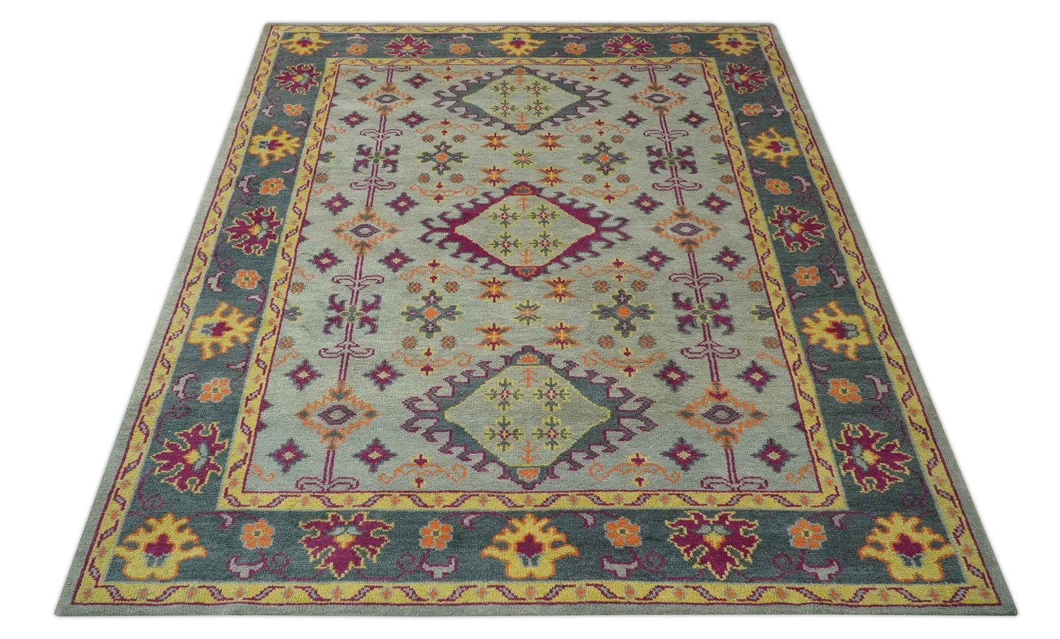 Custom Made Silver, Charcoal and Purple Traditional Oriental Hand Knotted wool Rug