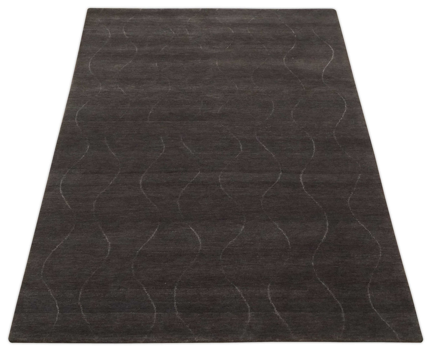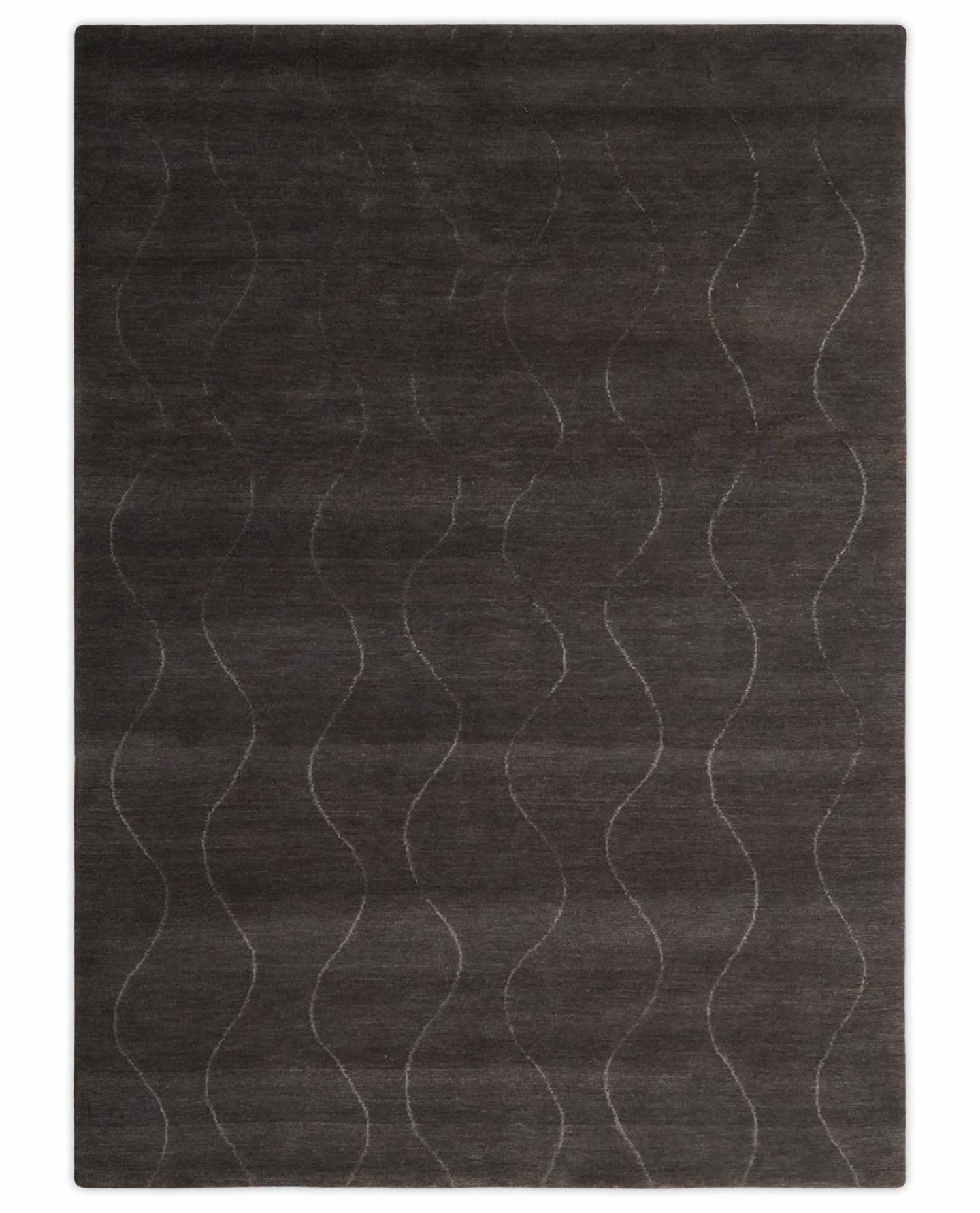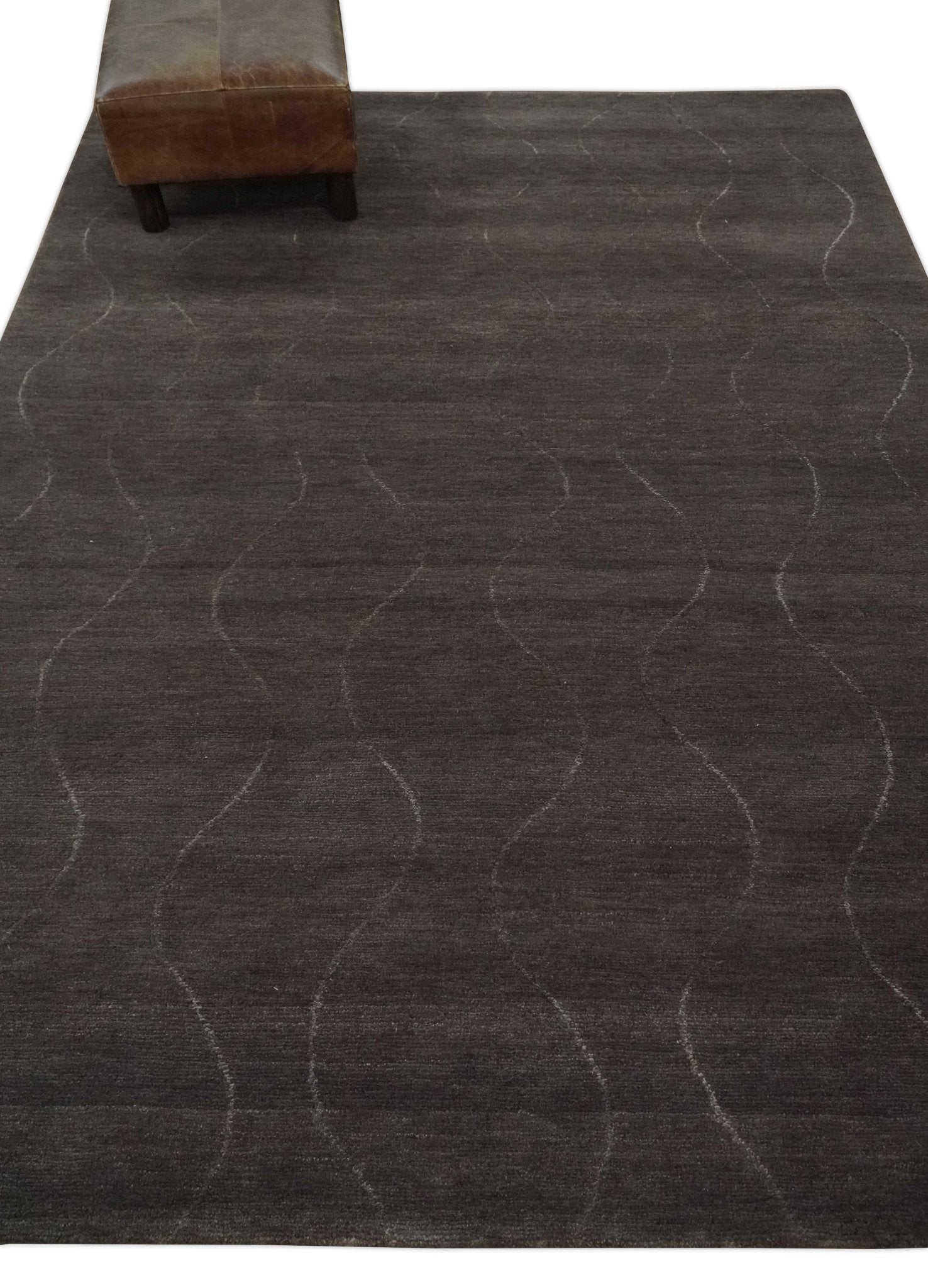 Dark Brown and Ivory Modern Stripes Pattern Hand knotted 5x7 wool and Art Silk Area Rug - 5x7 is backordered and will ship as soon as it is back in stock.