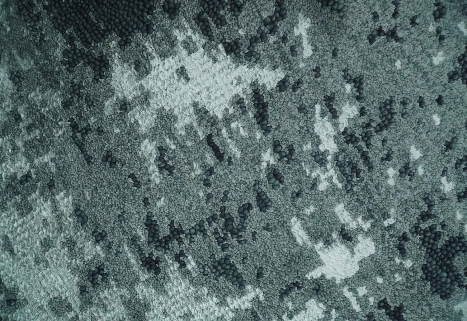 Dark Teal, Gray and Silver Modern Abstract Hand Knotted 5x8 wool Area Rug - 5x8 is backordered and will ship as soon as it is back in stock.