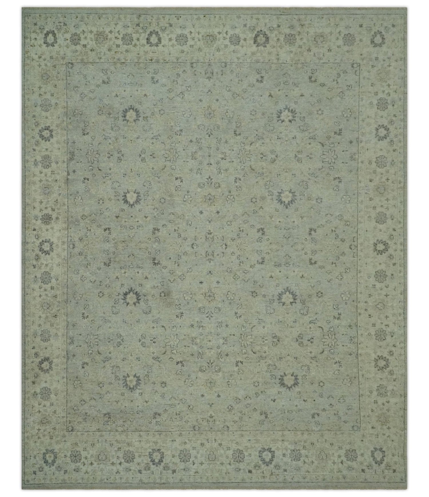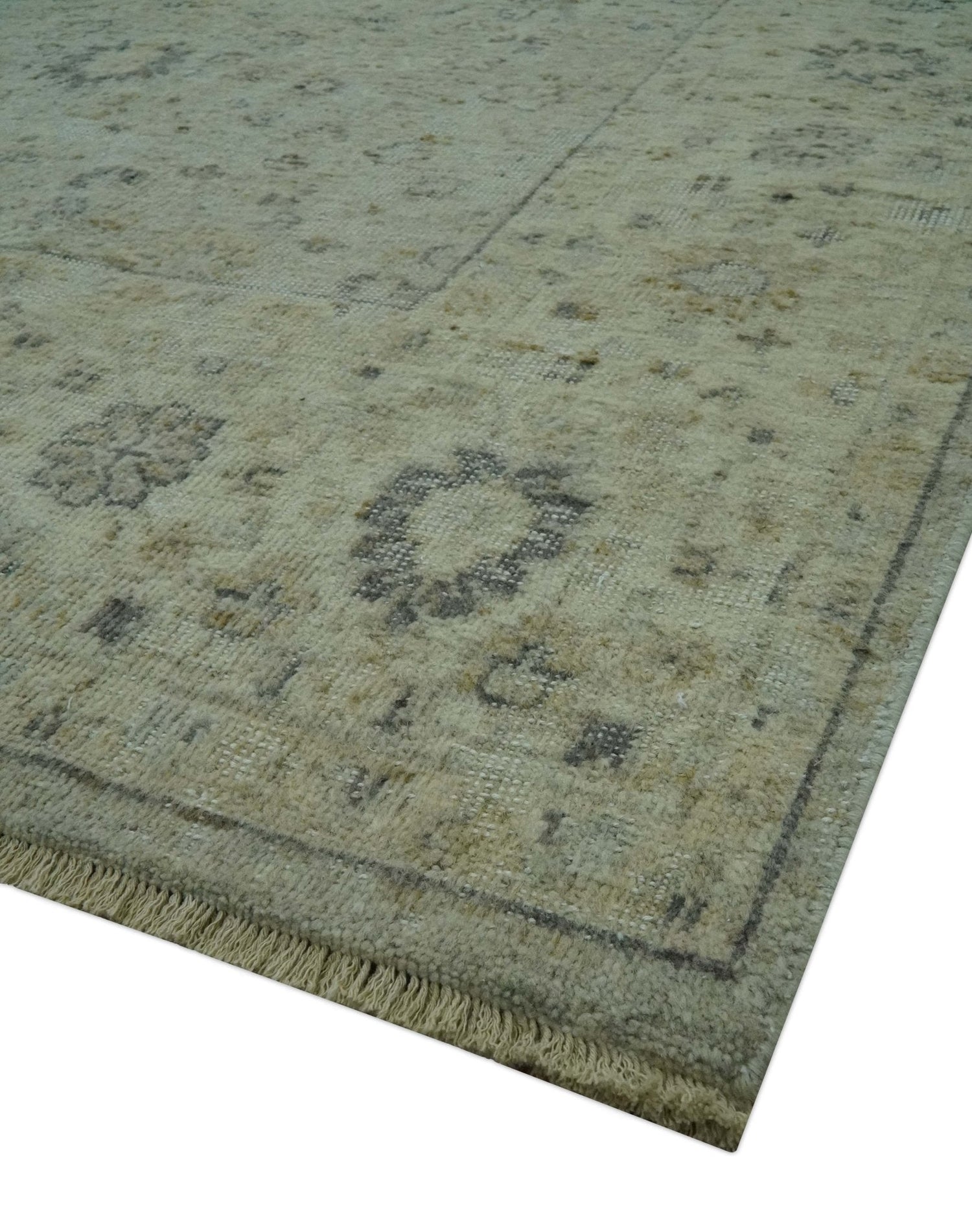 Distress Finished Beige, Silver and Charcoal 8x10 Traditional Wool Rug