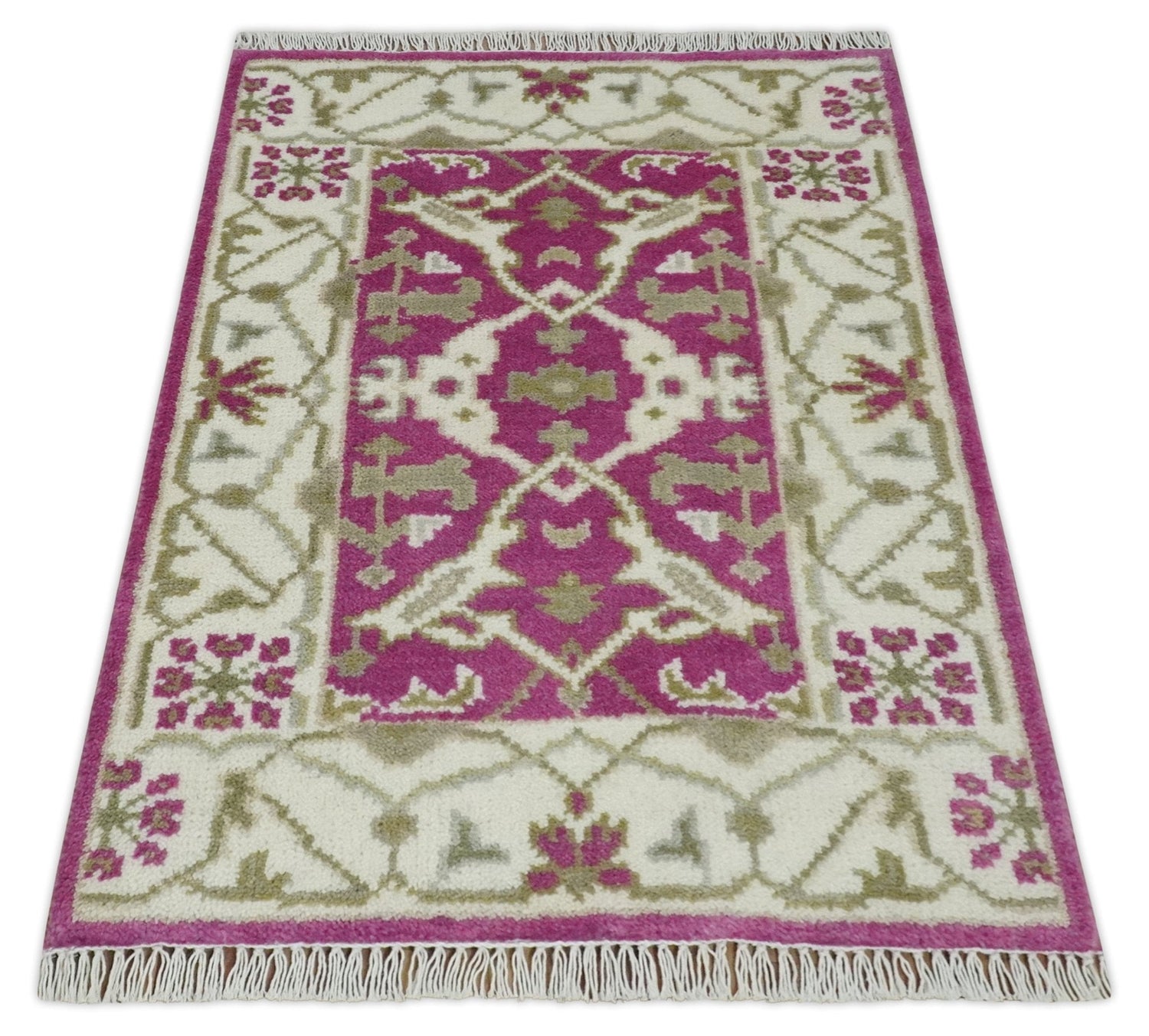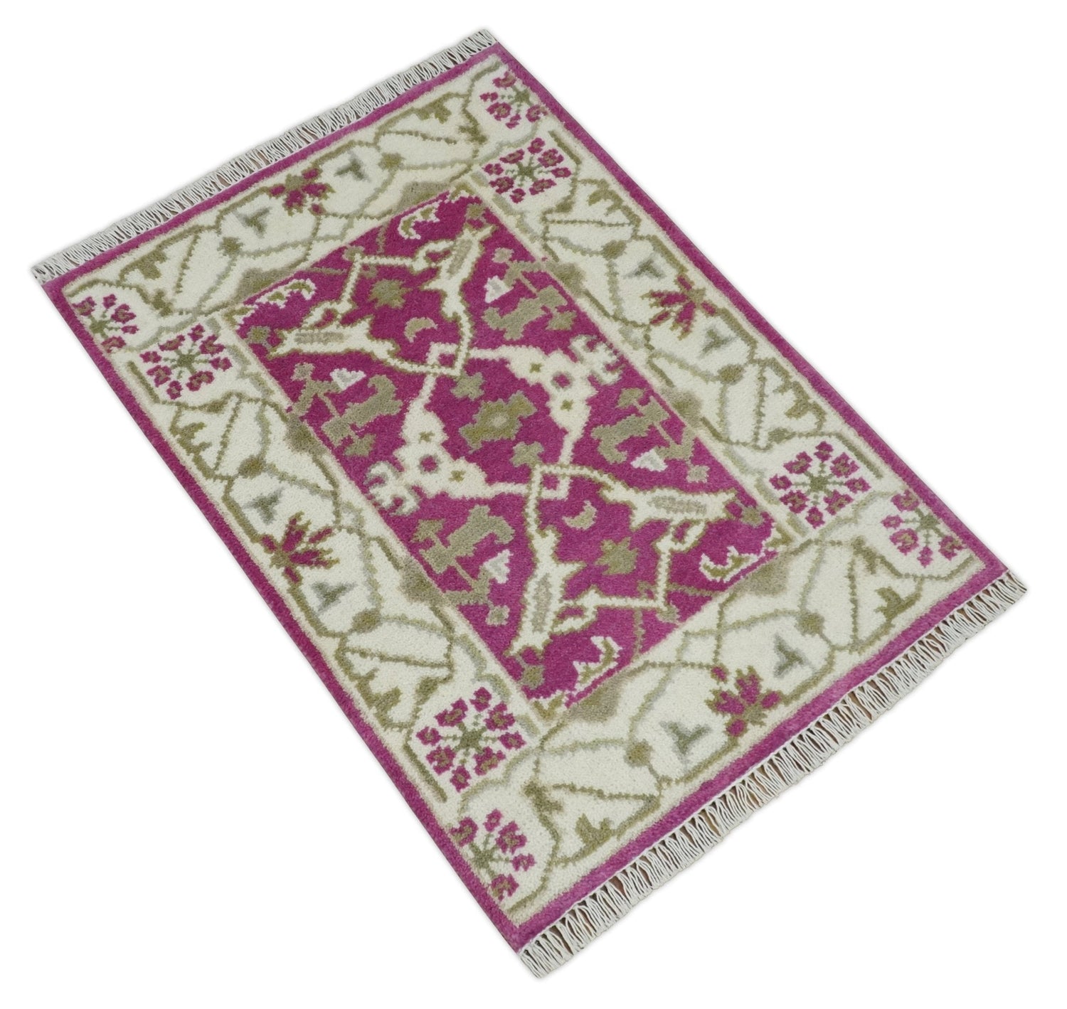 Entryway 2x3 Pink and Ivory Hand Knotted Oriental Oushak Wool Area Rug - 2x3 is backordered and will ship as soon as it is back in stock.