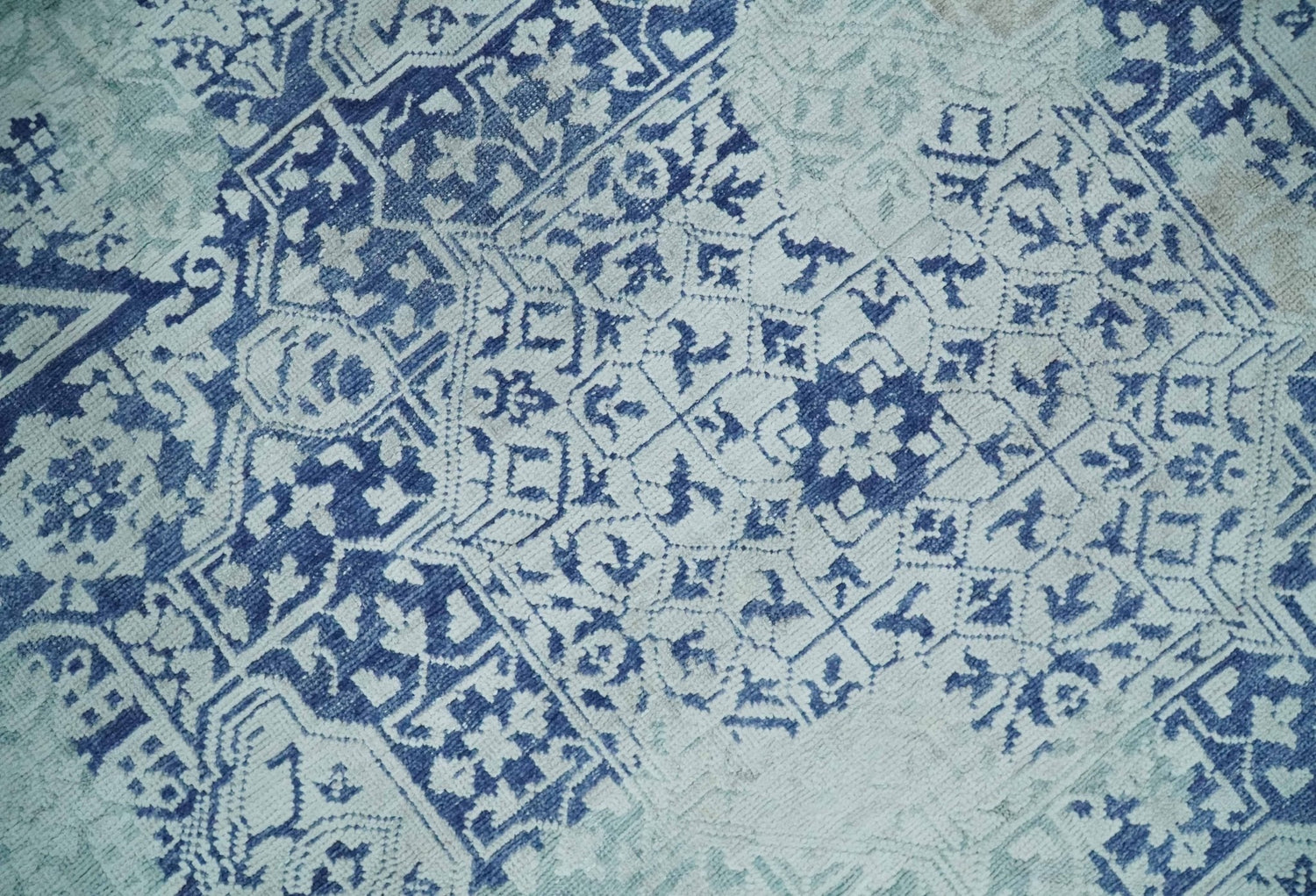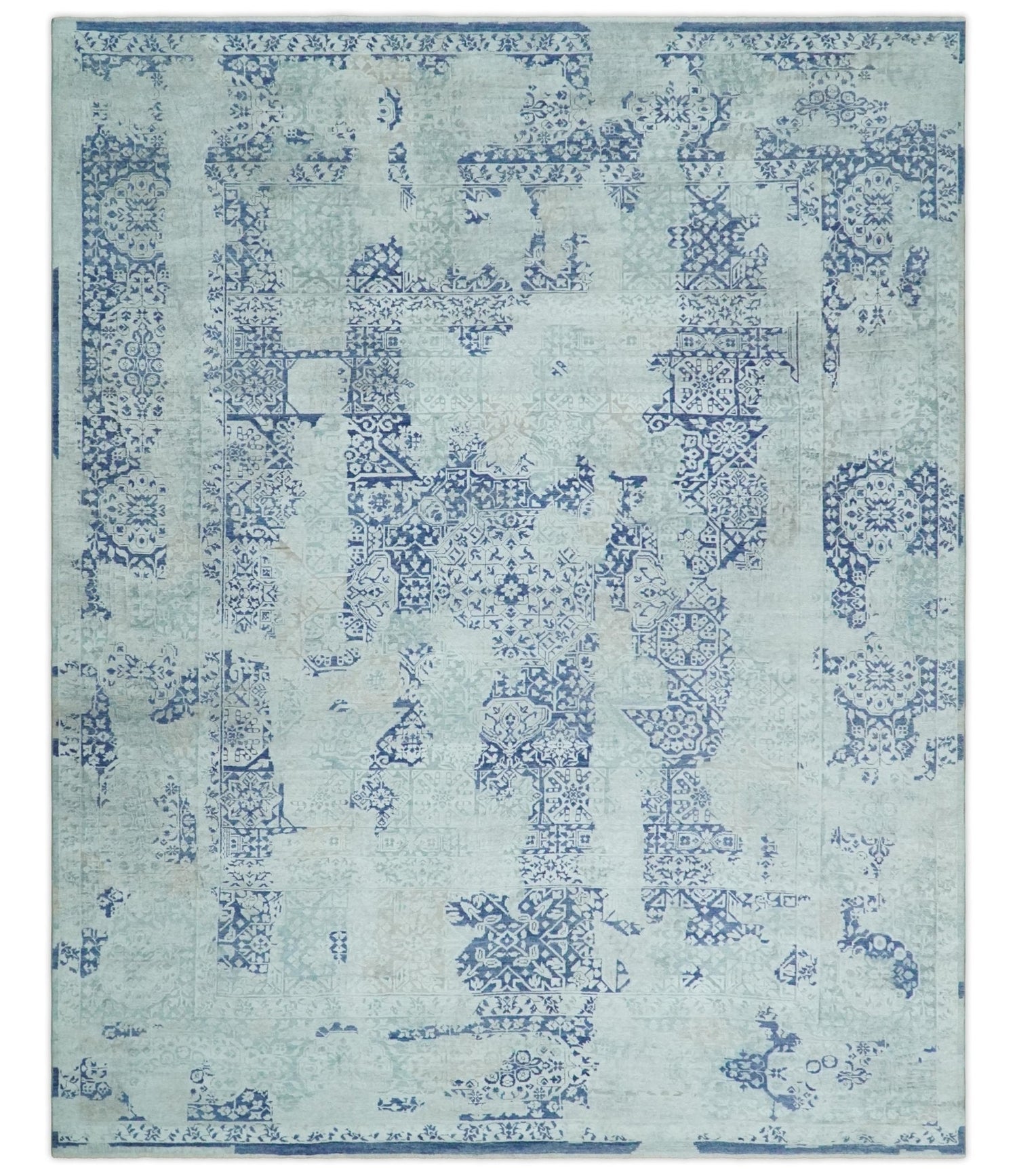 Fine Antique Design Silver, Light Teal and Blue transitional Hand Knotted 8x10 wool and Art Silk area Rug