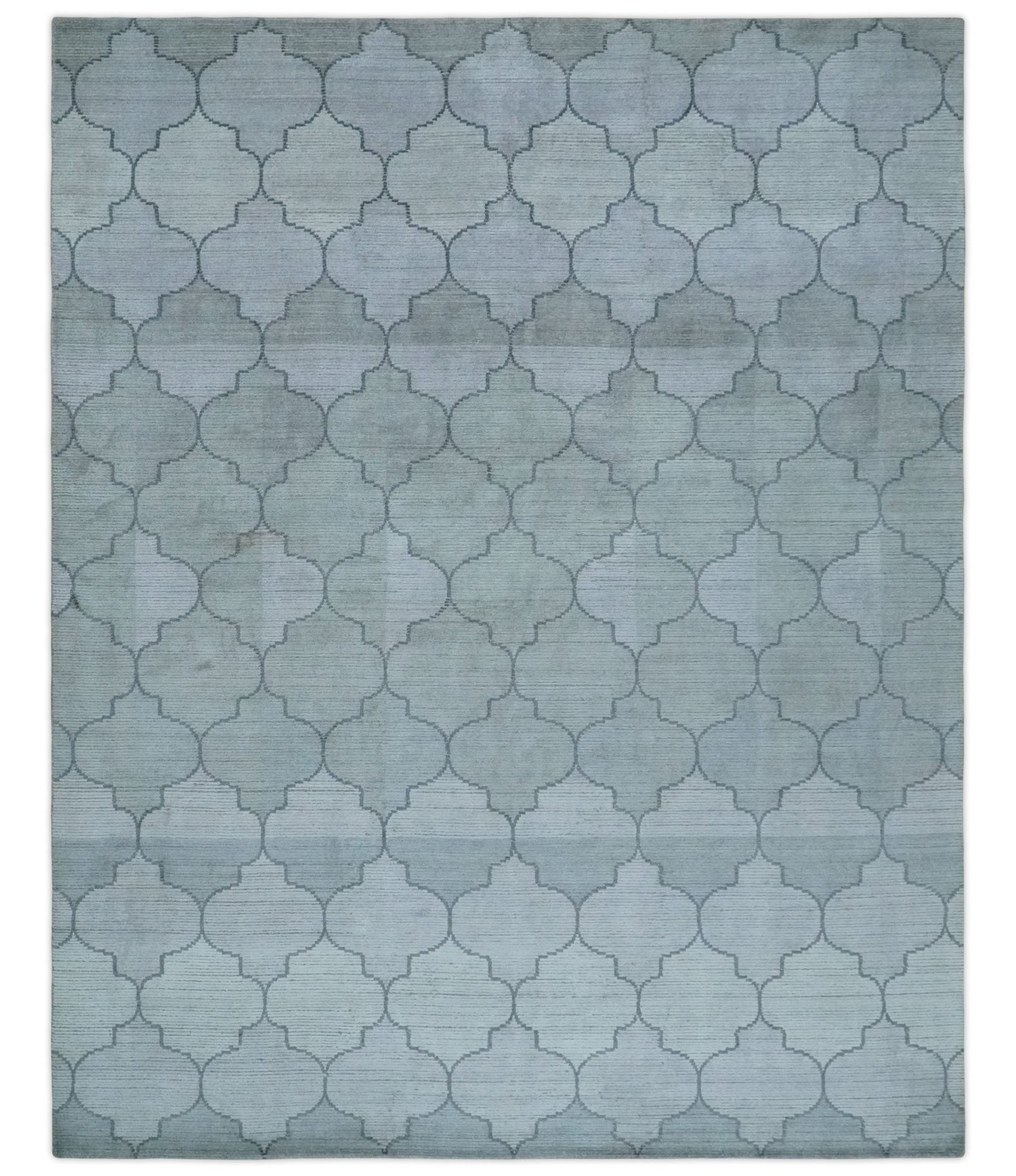 Fine Hand Loomed 8x10 Silver, Gray and Charcoal Modern Geometric Trellis Art Silk Area Rug