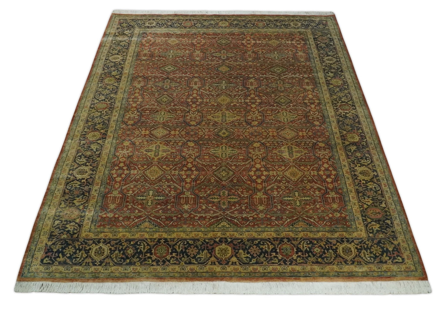 Fine Serapi Hand Knotted 9x12 Rust, Charcoal and Beige Traditional Antique Wool Area Rug