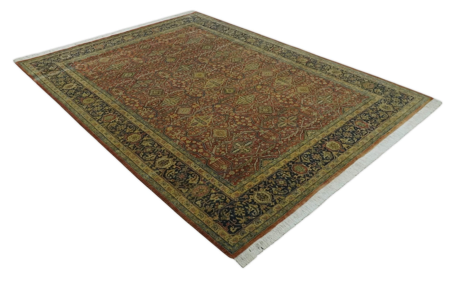 This 9x12 hand knotted wool carpet is the perfect addition to any traditional vintage interior. The rust, charcoal and beige hues offer a pleasant aesthetic that is sure to brighten any space, while the high quality, hand knotted construction offers a luxurious feel and superior durability.
