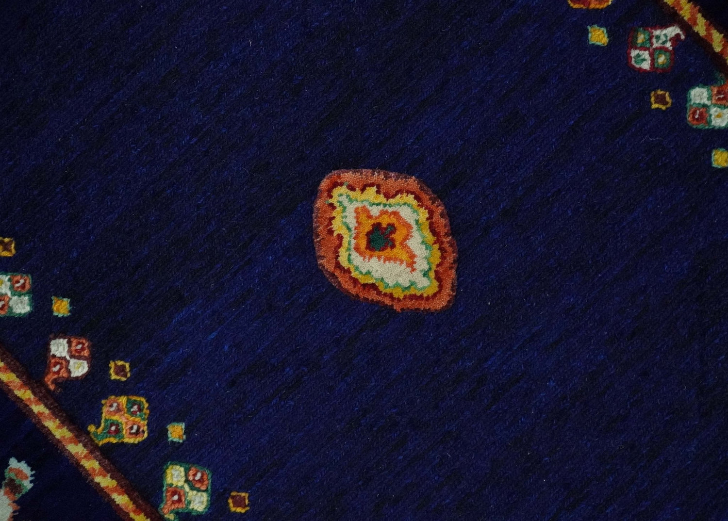 Flatwoven 5x7 Navy Blue Indian Wedding Soumak Rug, Hand Spun Wool Rug | KNT40