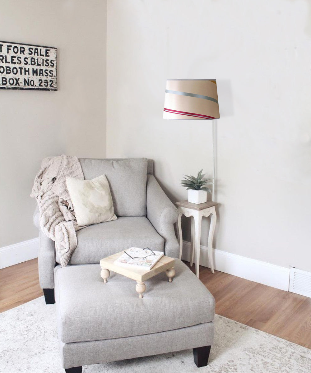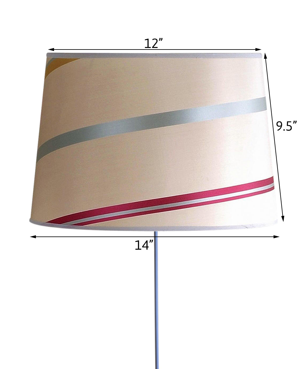 - STYLISH STRIPED RAW SILK: Drum shade with high-quality raw silk and features a chrome spider fitter is a favorite of designers for its depth and character and its ability to blend with most decor styles. Shade measures 12" Top x 14" Bottom x 9.5" Slant Height.