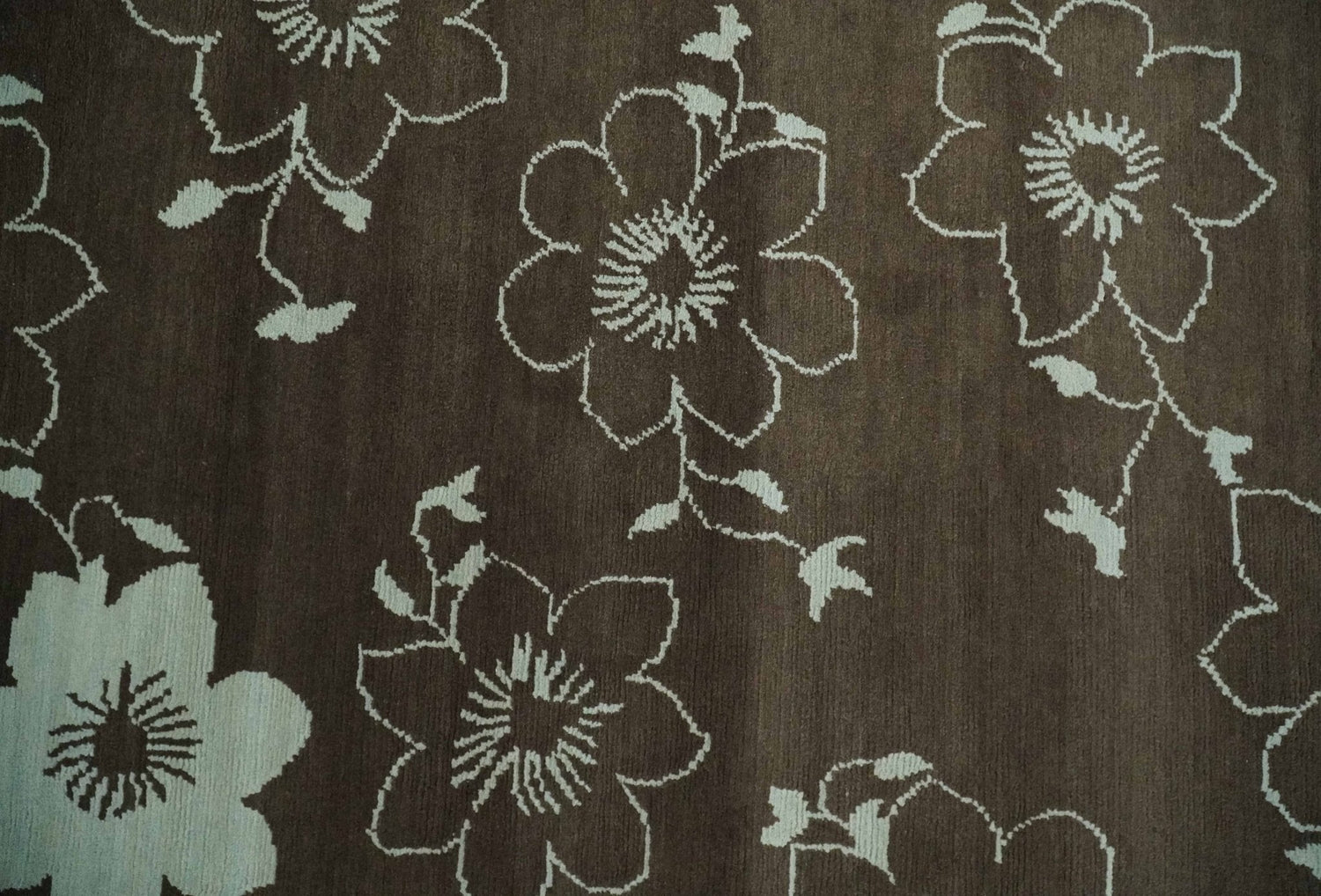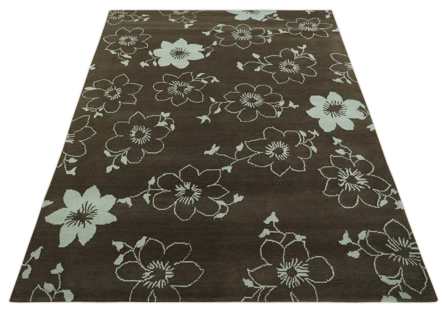 Floral 6x7.6 Brown and Ivory Hand Knotted Wool Area Rug - 6x7.6 is backordered and will ship as soon as it is back in stock.