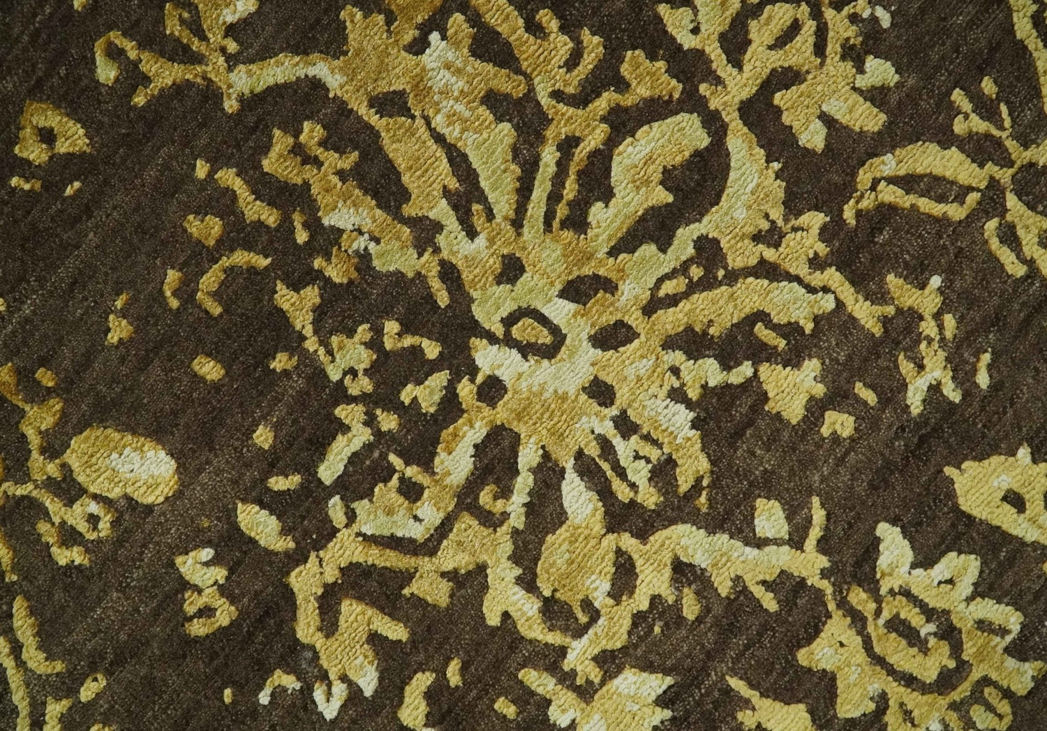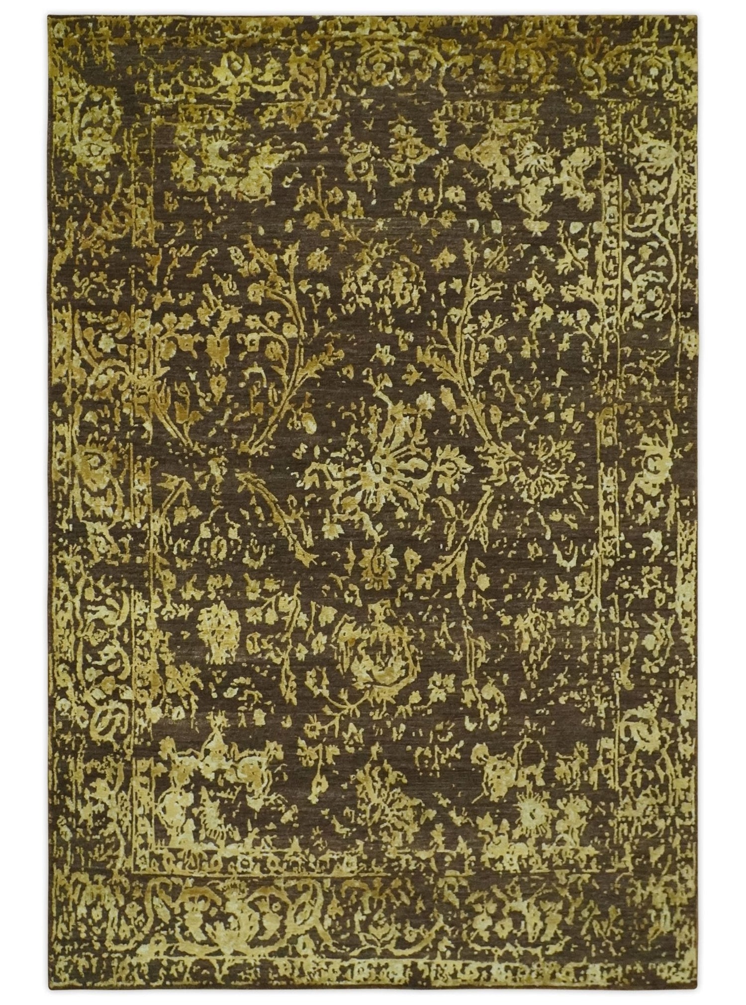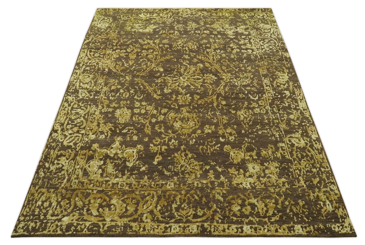 Floral Premium look Gold and Brown Hand Knotted 6x9 wool and art silk Area Rug