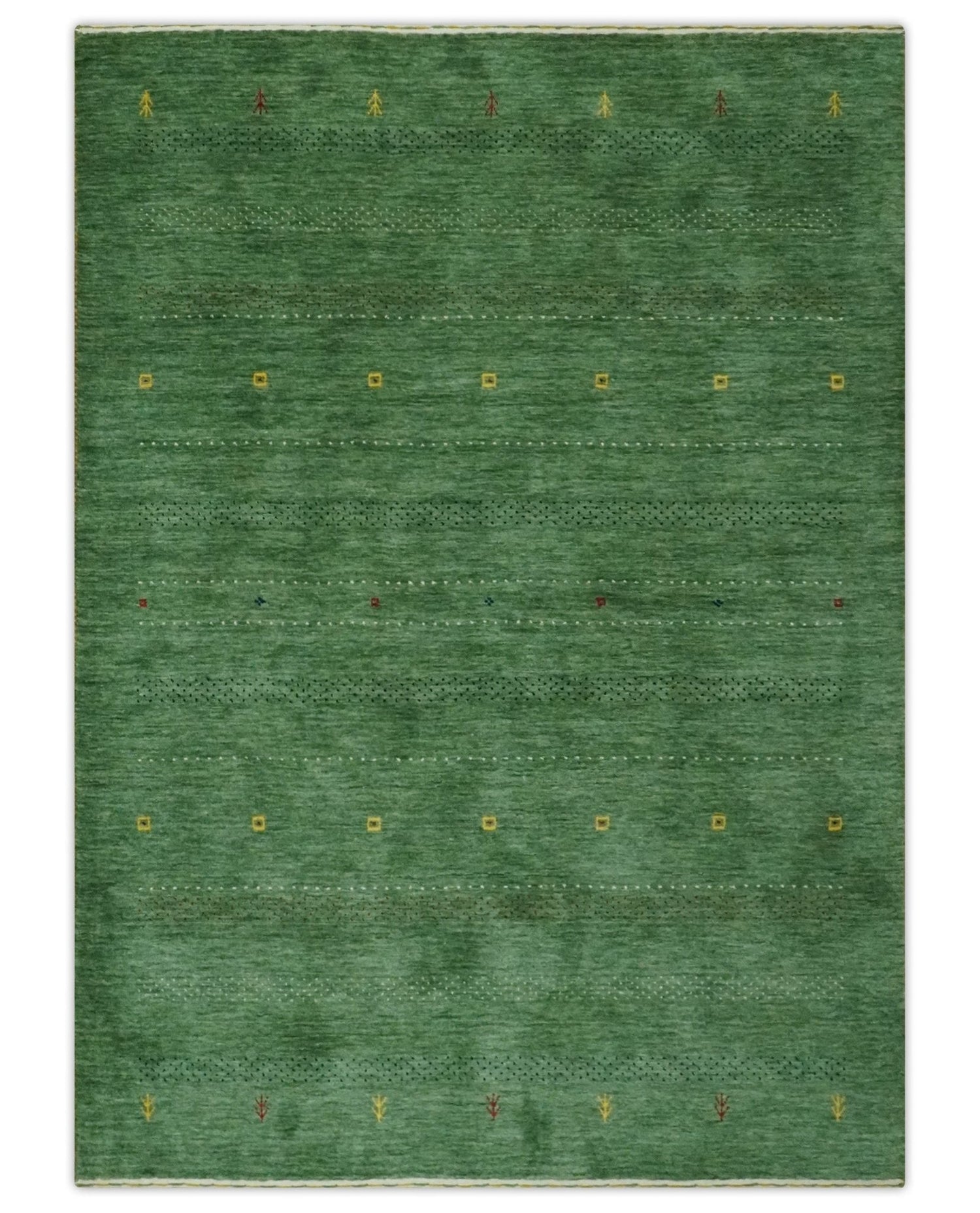 Geometrical Stripes Design Green, Ivory and Charcoal Hand loom 4.6x6.6 wool Area Rug