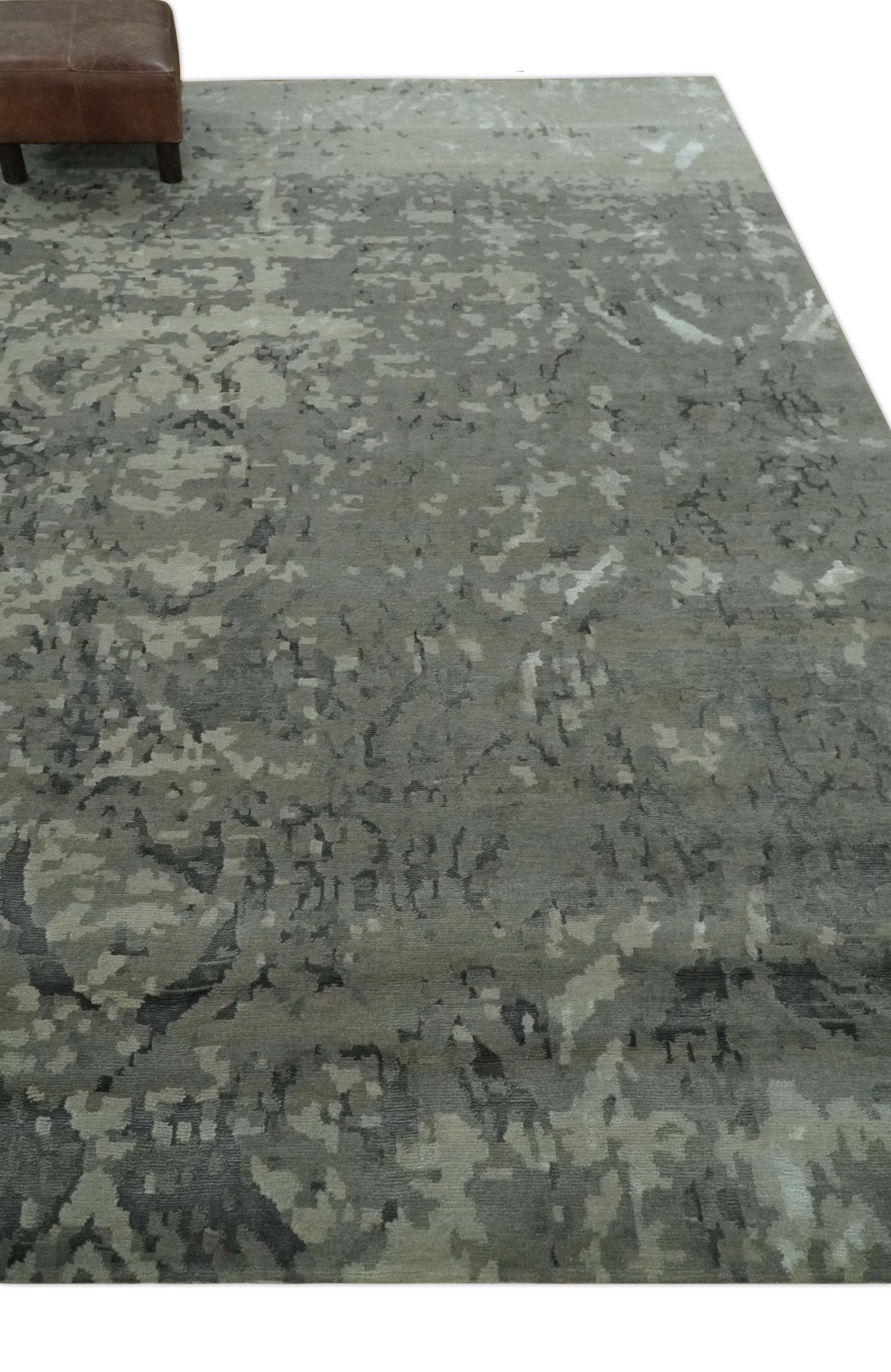 Gray and Silver Modern Abstract Hand knotted 6x9 Wool and Art Silk Area Rug