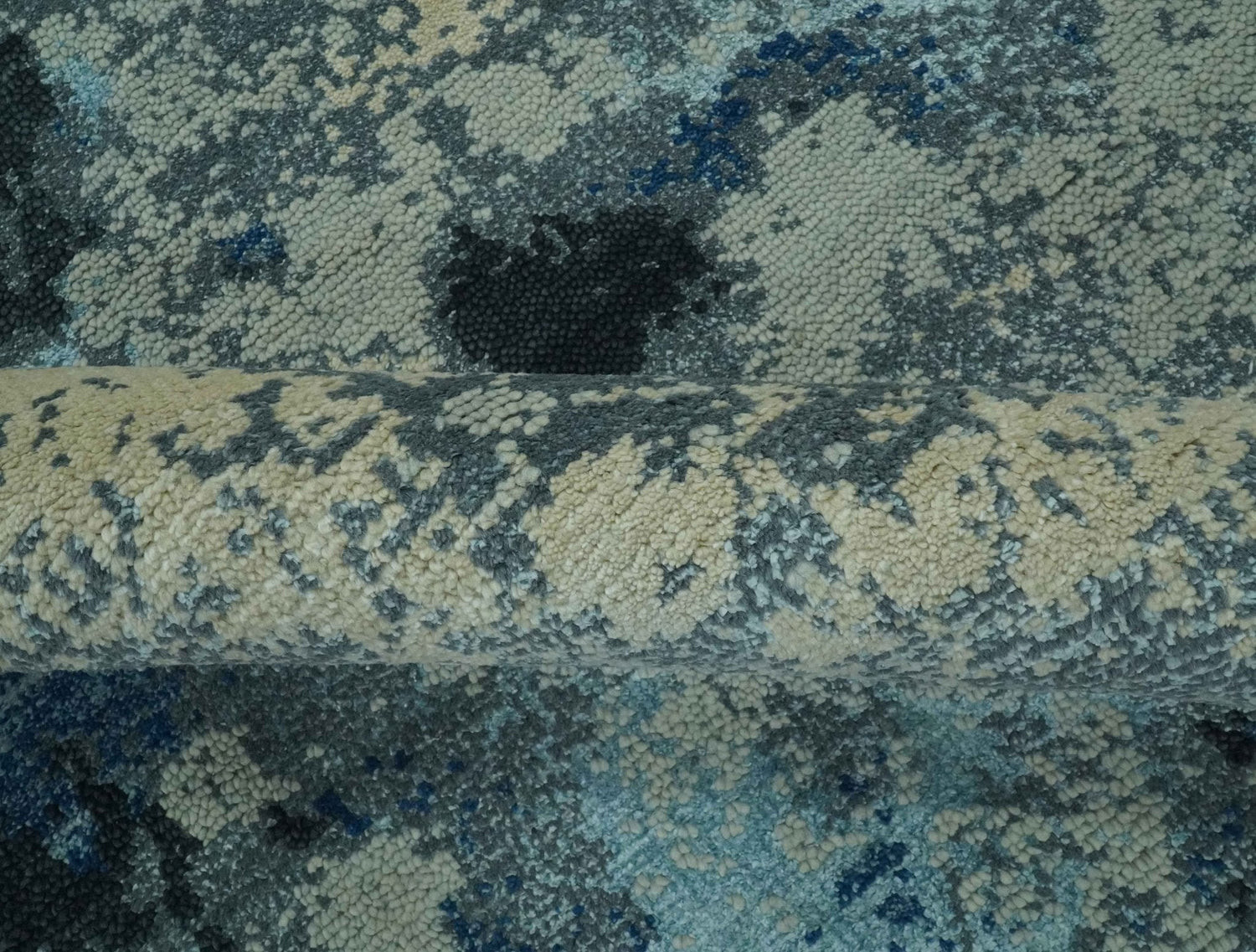 Gray, Blue and Black Modern Abstract 5x8 Hand Knotted wool area rug