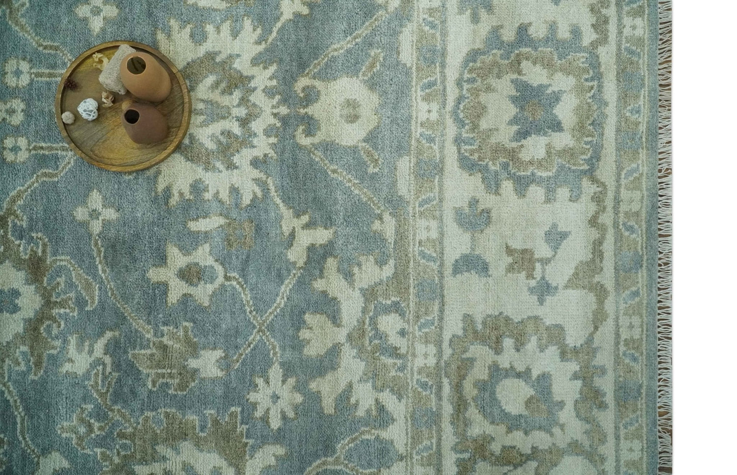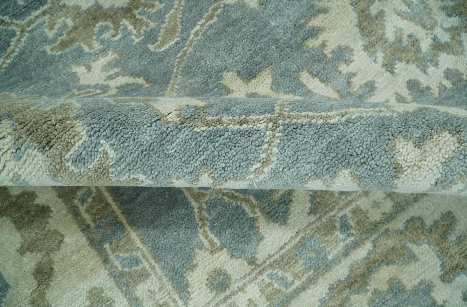 Gray, Ivory and Green Hand Knotted Traditional Oriental Oushak 9x12 wool Area Rug