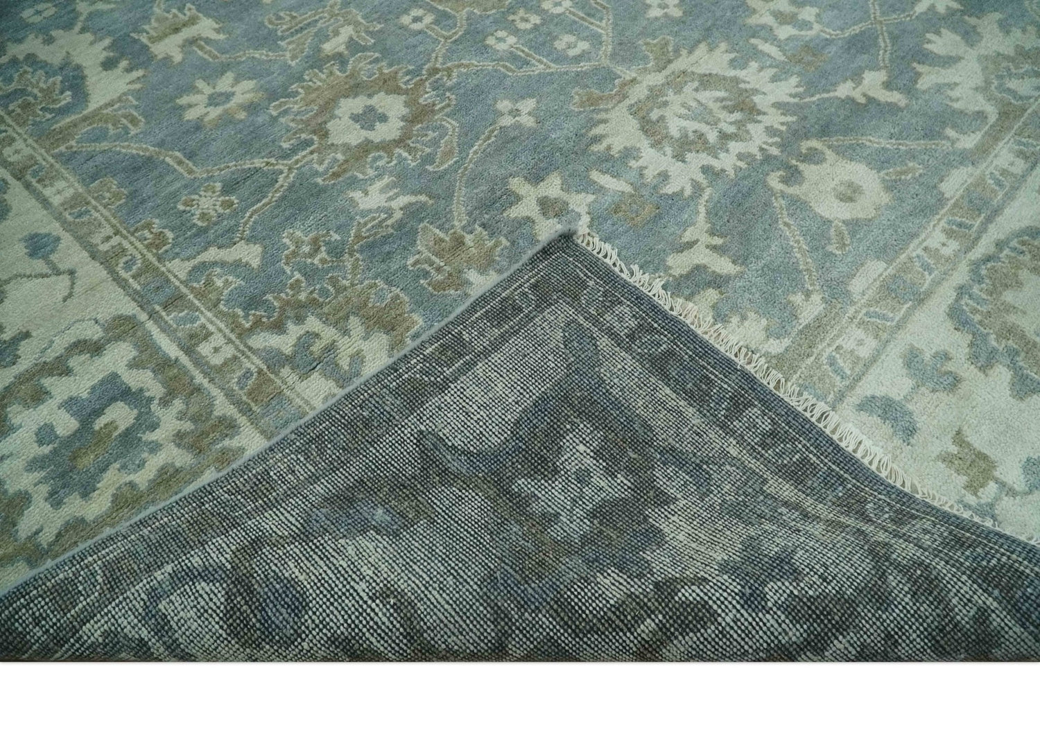 Gray, Ivory and Green Hand Knotted Traditional Oriental Oushak 9x12 wool Area Rug - 9x12 is backordered and will ship as soon as it is back in stock.